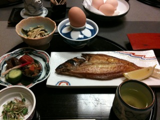 某玉造温泉の旅館さんの朝食です。ご飯は島根県は奥出雲で採れた、魚沼産と並ぶ特Aランクの仁多米、島根県西部から仕入れたでっかくて肉厚で脂ののったカレイの干物、味噌汁はもちろん宍道湖産のシジミ汁です。ついでに山陰などの日本海の特産品の板ワカメと地元産の卵を使った卵かけご飯もあったなー。
