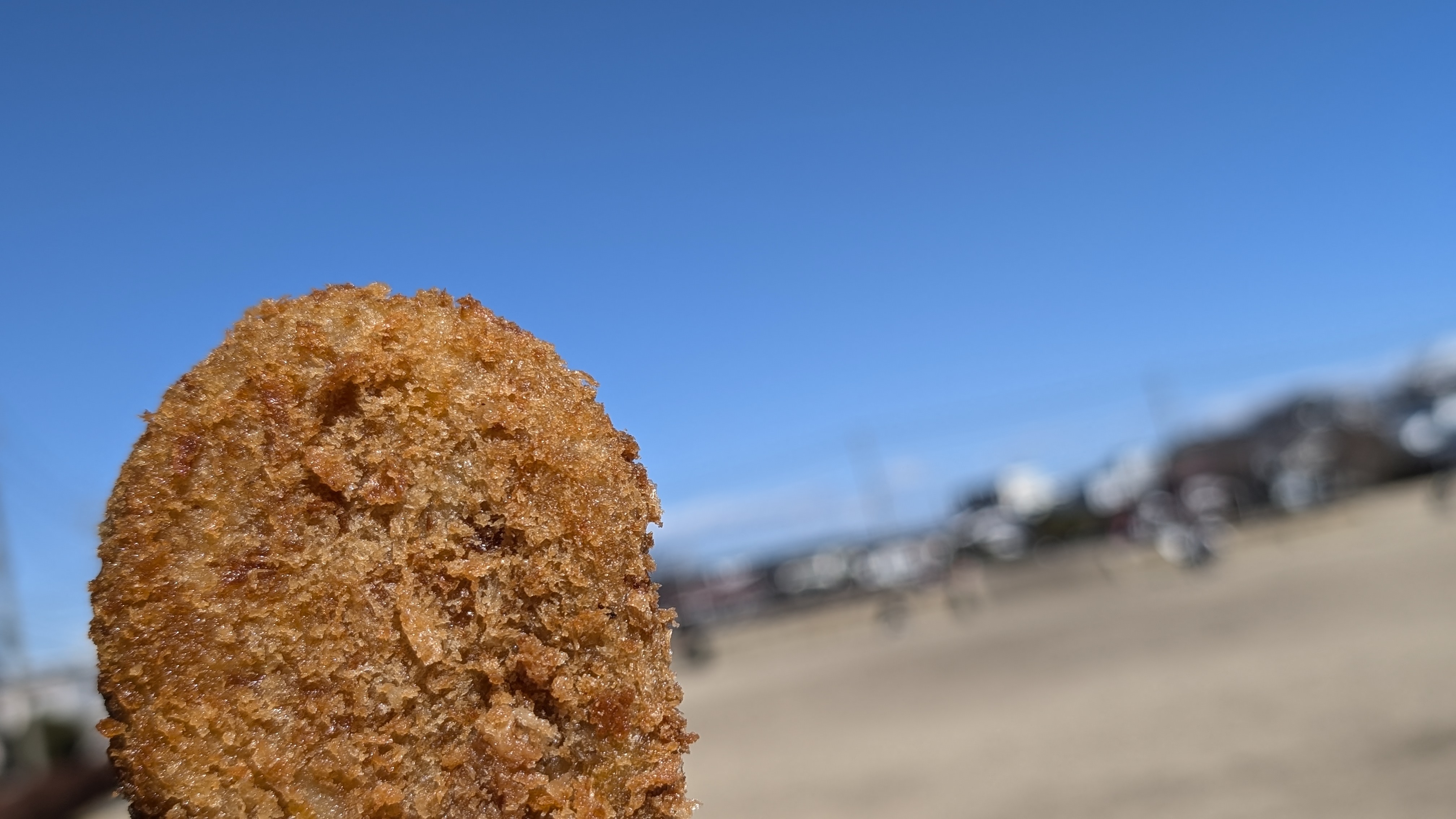 映画が早朝だったのでみ終わったのにお店がオープンしてないという状況でしたので、『肉のだいわ』さんの近くをうろうろしてたら公園があったので、オープンしたてでコロッケとメンチカツを購入して「相模国分寺跡」まで移動していただきました。