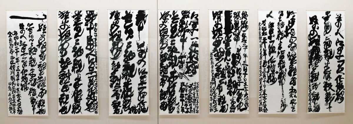 その日から、彼は東京大空襲の惨状をいつか表すことを自らに課して、小中学校で教職を続けながら書の前衛的表現を追究していきます。