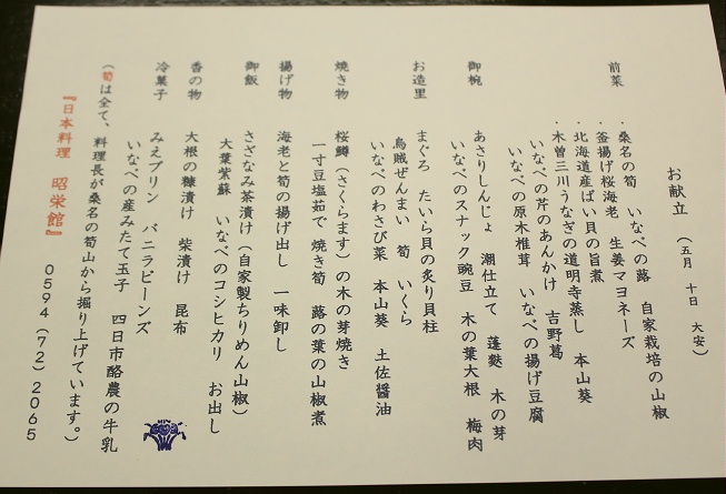 「料理長の日記」 三重県いなべ市 阿下喜(あげき)の日本料理 昭栄館