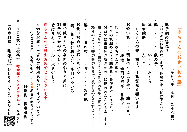 伝統のお食い初め膳で一生の記念を・・・… 2025.10.11
