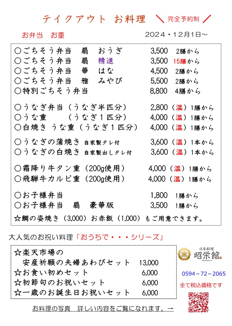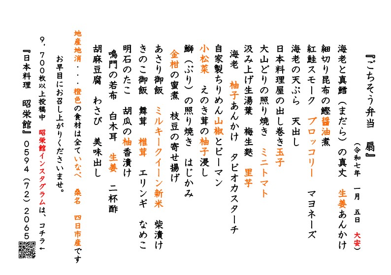 是非、昭栄館のごちそう弁当をご注文電話下さい。