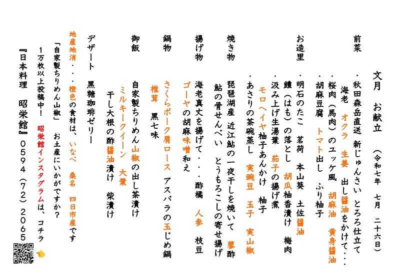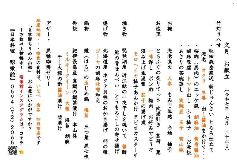 「料理長の日記」 三重県いなべ市 阿下喜(あげき)の日本料理 昭栄館