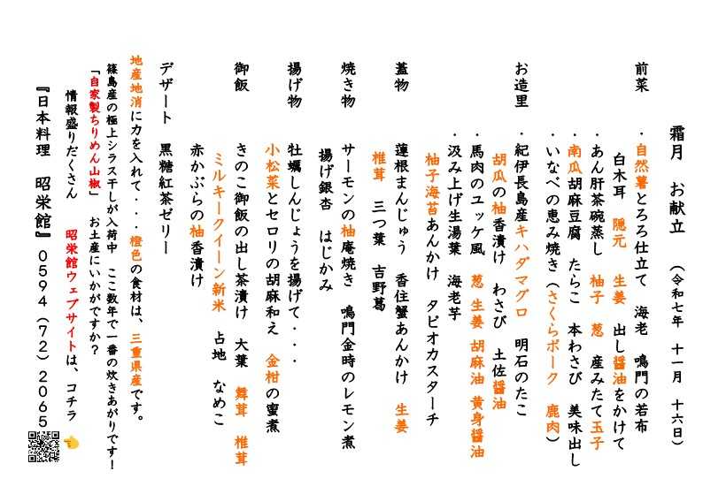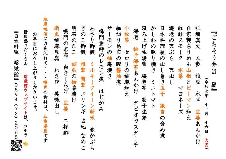 本日は文化の日。ご来店 テイクアウトお… 2025.11.03