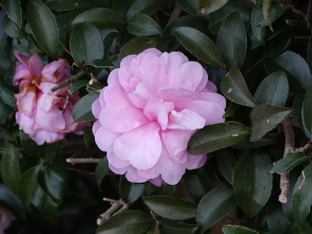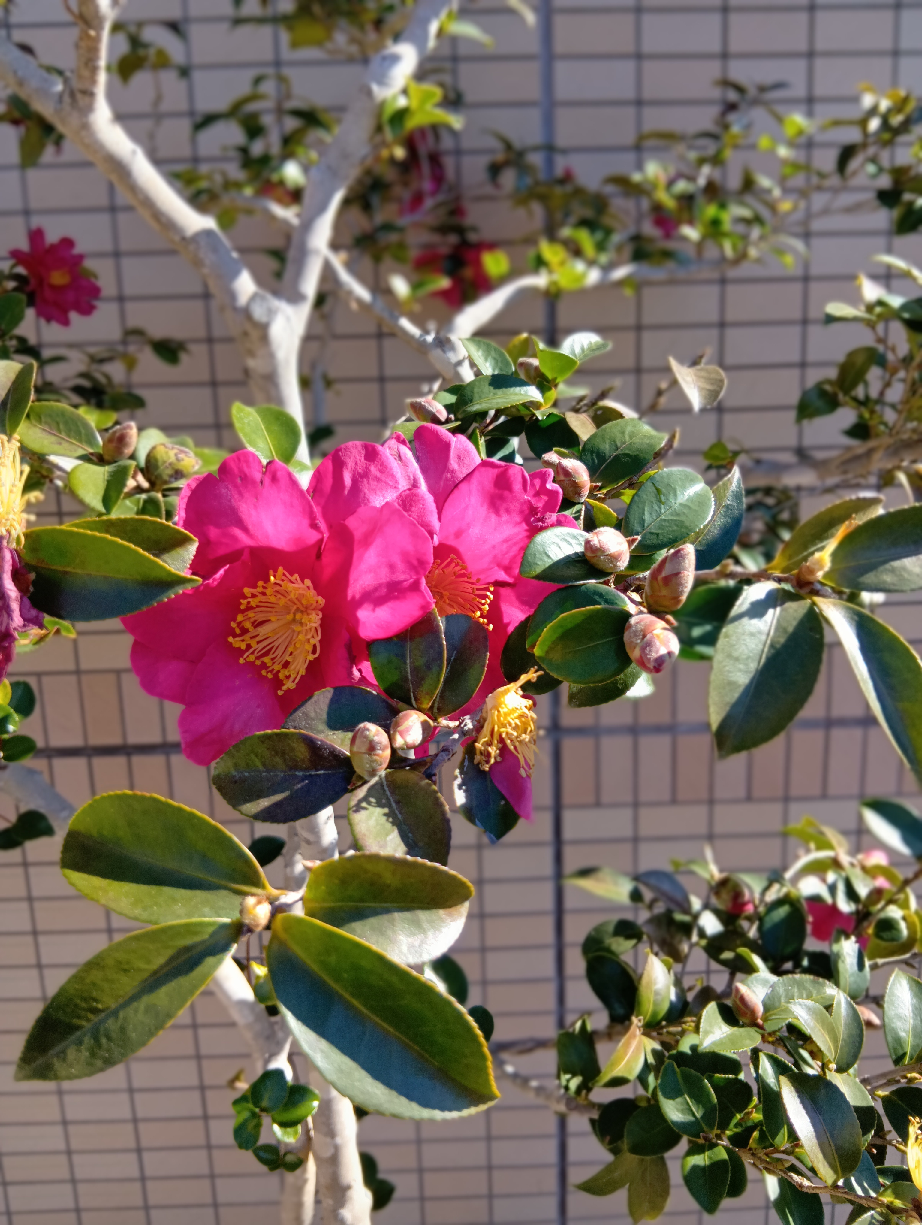 こんにちは^^今日の朝方も寒かったです( ;∀;)朝は中々起きれません。夏は5時半には起きたんですが今は6時半です^^起きると孫三人は既に起きていて三男君は元気に走り回ってます^^今週は保育園での体温測定が37.7℃、37.8℃と上がってお休みを覚悟してましたが何とか1週間休まずに登園してくれました^^長男君と次男君は今年の春から自分の学区の小学校です^^長男君今までは通学距離が結構あったのでスクールバスを使用してましたが4月から自分の家から約2Kmを徒歩で通学です^^良い運動になって体力がつくと思います^^あーまたまたツバキと山茶花の違いがわからなくなりました。昨日掲載したこれは絶対にツバキだと思ってましたが正解は山茶花のようですね( ;∀;)じゃこれも山茶花ですかね^^(自分は今までツバキだと思ってました)これは絶対に山茶花だと思うのですが??家の敷地に咲き始めたこれはツバキだと思うんですが・( ^ω^)・・・葉もツバキだと思うのですが???周りにギザギザがあるのがツバキ???