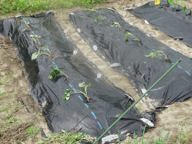 こんにちは^^本当に毎日毎日暑いです( ;∀;)先日のテレビの今後の予報で10月まで暑いって言ってましたが自分の大好きな秋が無くなってしまうんでしょうか??三男君今日も頑張って登園してくれてます^^母親が送って行くよりバァバの方が良いのでしょうか??バァバのクーで(車の事です)・・って長男君と次男君は8月28日が二学期の始まりです^^自分たち子供の頃は8月一杯迄が夏休みだったんですが??土曜日が休みになった為授業日数の関係で夏休みも少し短くなったんでしょうか??さぁーてこの暑い中農作業は待ってくれませんので長ネギを植える事にしました^^今年は60本購入です^^作ってあった畝の真ん中に溝を掘って10Cm間隔で苗を置いて行きますはい60本植えました少し土を被せて藁を引きます水を撒いて作業終了ここまで1時間弱、汗びっしょりです後はちゃんと根が張って来たら苗を起こして垂直にします成長してきましたら成長点が土から出てきてしまうので3週間に一回の割合で追肥をしながら成長点まで土を被せていきます^^この繰り返しで食べるところの白い部分は多くなってきます^^11月中旬過ぎの鍋の季節になる頃が収穫の時期です^^暑さにやられないようにお願い致します。