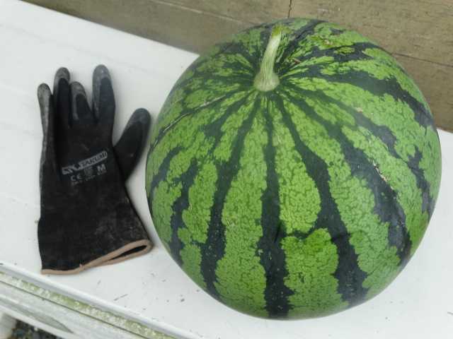こんにちは^^ブロ友の皆様訪問ありがとうございます^^今週1週間も孫三人熱も出さず元気に登校・登園してくれました!(^^)!お陰で雨の日以外は家庭菜園の農作業ができました^^🥒の苗を植えてから約1ヶ月やっと一本収穫出来ました(^^)/シャキシャキしていて美味しかったです^^これから徐々に収穫できると思います^^近くのスーパーマーケットで一本45円(税抜き)で販売してました^^大玉🍉1種間前(苗を植えて約1ヶ月で受粉後4日の状態)これの昨日の状態ここまで大きくなってきたのは、受粉からちゃんと着果した状態だと思います^^このまま何も無しに順調に育ってくれれば7月初めには収穫出来そうです^^市場では多分一個当たり1500円以上はすると思います但し🍉の栽培は結構難しいので順調に育ってくれればの話です