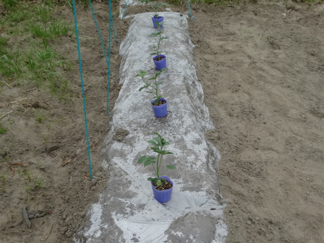 こんにちは^^皆さんにご心配かけました次男君の熱ですが次の日には平熱に戻り月曜日から元気に登校してくれてます^^ここのところ気温が一気に上がって25℃を超えてます( ;∀;)自分が一番嫌いな季節が段々と近づいてきてます今から憂鬱です( ;∀;)今年は昨年より暑くなるとか??昨日苗を購入してる種苗屋さんからメールが入って夏野菜の苗の大売りだしをしてますって^^もうすでに植える場所の畝を作ってあるので早速購入しに行って来ました^^大玉🍉(ラオウ)4本、🥒6本、🍆3本、ミニ🍅3本、ピーマン3本大玉🍉🍆ミニ🍅ピーマン🥒全て植えて風よけの為に周りをビニル袋で囲みますこれで作業完了、作業時間約1時間・( ^ω^)・・・汗びっしょりになりました。大玉🍉は40日後、後の野菜は25~30日後でしょうか???新玉ネギを収穫した跡地には小玉🍉とプリンス🍈を植える予定です^^