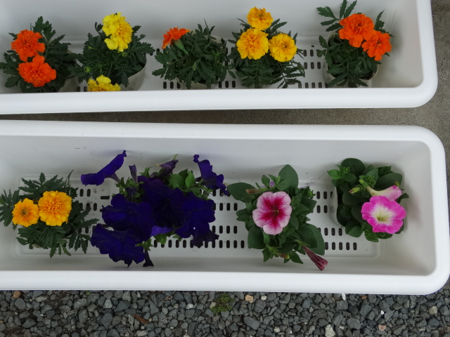 こんにちは^^今日は朝は快晴でしたが午後から曇り空になり少々寒くなってきました( ;∀;)今日は最初、家庭菜園の🍉を植える場所と夏野菜の🥒🍆🍅を植える場所に苦土石灰を蒔いて耕す予定でしたが苦土石灰が無くて近くのコメリまで購入しに行って来ました。そこでマリーゴールドの花の苗が安く販売してたので・( ^ω^)・・・最近玄関前が寂しく( ;∀;)急遽予定変更して玄関前にコンテナを置いて花を植えました^^培養土をコンテナに入れてはい2コンテナに花を植えて終了です向かって左側の二つの花は何だっけ??庭に咲いてる花ですアッ3月3日に植えた🥔の芽が出てきました^^明日は雨予想なんで家庭菜園の🍉を植える場所と夏野菜の🥒🍆🍅を植える場所に苦土石灰を蒔いて耕す作業が出来ない🦆です