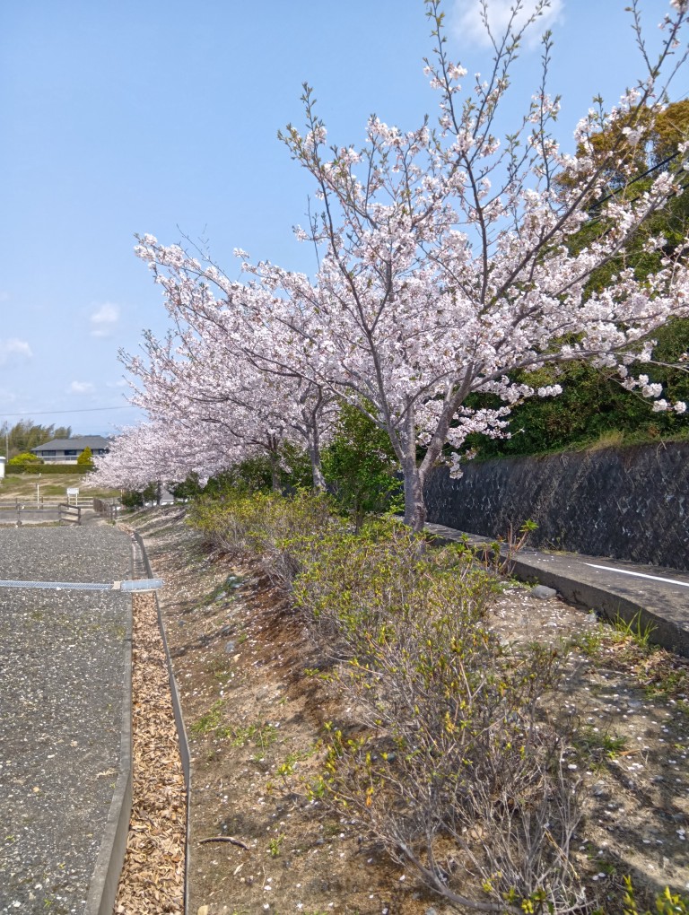 こんにちは^^今日は朝から快晴です!(^^)!桜もそろそろ終わりに近づいてますね( ;∀;)花びらが風に舞ってホロホロと落ちてます^^昨日は長男君の始業式です^^転校して初めての通学です。学校まで片道2Kmあります( ;∀;)今まではスクールバスで登校してたので歩いての登校は結構きついかもですね。で、今日の午後は次男君の入学式です^^写真を撮るのを忘れてしまいましたがランドセルの大きいこと大きいこと^^ほんと^^ピカピカの一年生ですで、三男君は日曜日から熱が出ちゃって鼻水も酷く保育園をお休みです( ;∀;)明日も無理かなぁ??近くの公園の桜です^^ 下を見ると花びらが・( ^ω^)・・・もう終わりに近づいているんでしょうか??今日はこの場所の草を刈る予定でしたができませんでした。月末には🍉の苗を植える予定なんで植える2週間以上前に苦土石灰を蒔いて酸性の土地をアルカリ性にしないといけません、逆算すると今週末には終わらないといけません。これから家庭菜園の農作業が多くなってきます(#^^#)