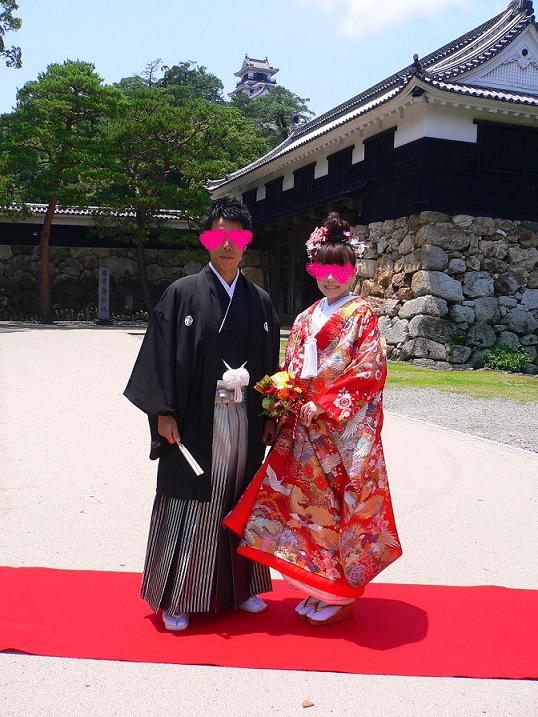挙式日:2008年7月6日(日)会場:ウェルサンピア高知 11時より挙式でしたぁ高知は梅雨真っ只中だったにも関わらず、晴天ちなみにその前後は引くくらい雷雨だったので、普段の行いの良さがこんなところでウシシ(笑) やぁっぱりここは日本人らしく神前式白無垢着たかったし、みんなの前で誓いのチューなんてもってのほか雑誌にも書いてあったけど、秘め事は隠れてするから秘め事であって。。。ってそれとこれとは違うか 路チュー反対 初めて文金高島田っつーもんを被ってみましたが、重い重い!!重心とるのが大変でしたよ 白無垢着た他の花嫁さん優雅だなぁとうっとりして見てたのに、これは身動きが取れないだけだ!と実感腹回りが分厚くて、カツラもあるせいか前かがみになれない三々九度、口付けるだけでも。。。と思っていたのに口まで持ってくることができませんでした ザンネン! ・・・で、結婚式といえば指輪交換リングピローはお友達の手作り本当は自分で作ろうと、作成キットを購入したものの、花が何とも難しく。。。 私「頼んだ!!」 友達「オッケー!!」即 決。 すげえ。これが25年来の友情だぜ それにしても、挙式の二日前に頼んだ私も私だけど、一日で仕上げてくれた友人Yはスゴイてか頼むならもっと早く頼めよ、私 サンキューYちゃん 神前式って親族同士、代表者を設けて親族紹介みたいなのがあるんですけど、彼側のお父さん、彼パパ「お、お前がやれっ」彼ママ「いや、何で私が!お父さんがやりや」と夫婦で押し付け合いをすること数分。。。うちの親族、呆気。彼の親族、苦笑。。。。あのぅ、そういうのは事前に打ち合わせを済ませてくださいね(笑)ちなみにこの後、結局彼ママが親族紹介をしてくれました。 っていうか、お義父さん。。。しっかりしてくださいその弐に続く