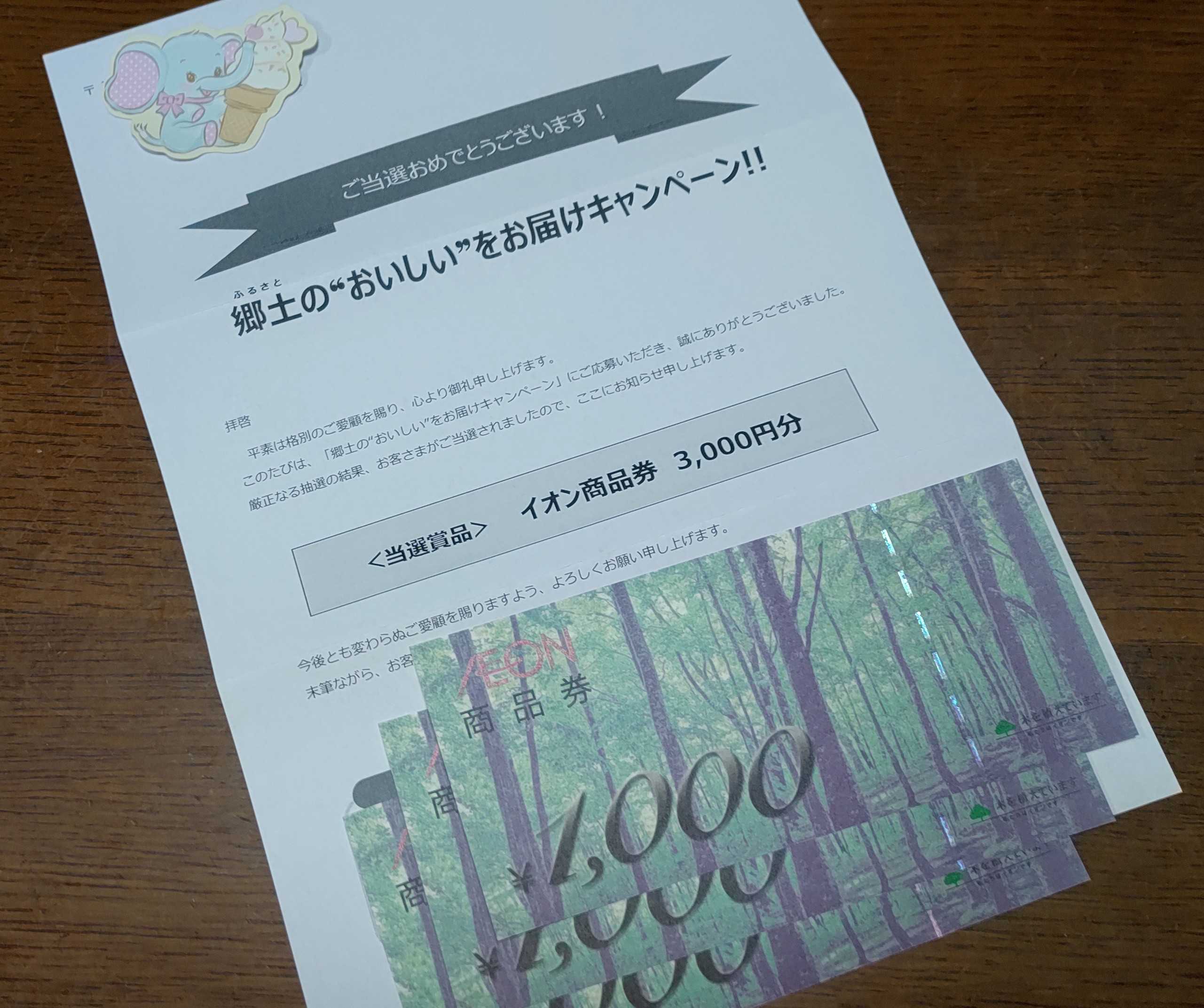 昨日のことですが留守中におっとくんが簡易書留を受け取ってくれました😉🍀マックスバリュ西日本&メーカー協賛キャンペーン🎁B賞 イオン商品券 3,000円分コレです↓💕ありがとうございます💕久しぶりに金券の当選が続いてます😊