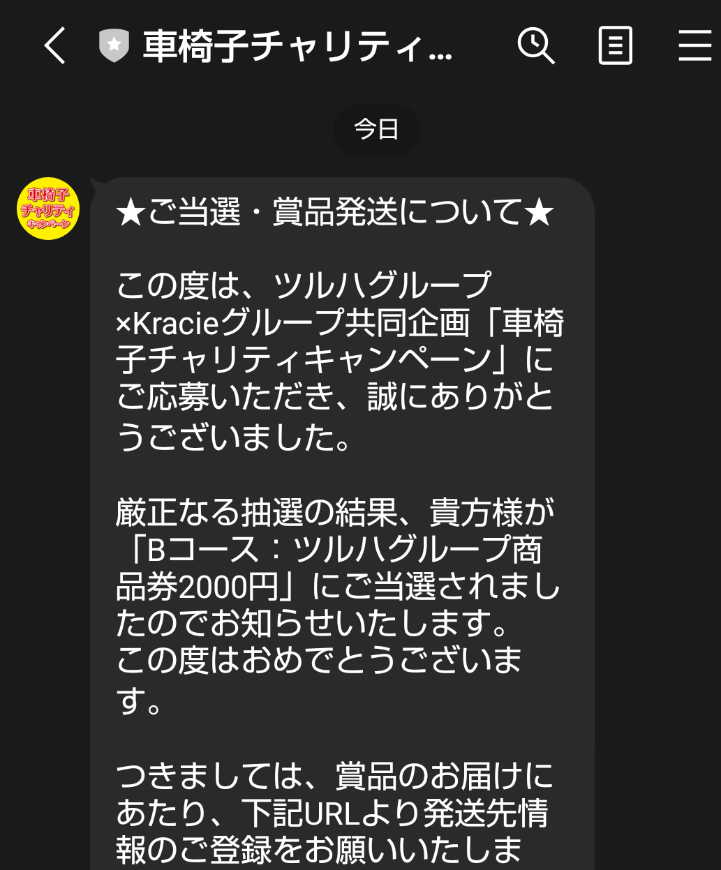 LINEに当選通知が届きました😉🎁金券です🤑必要事項を入力&送信で完了☺️届いたら報告します🐼💕ありがとうございます💕