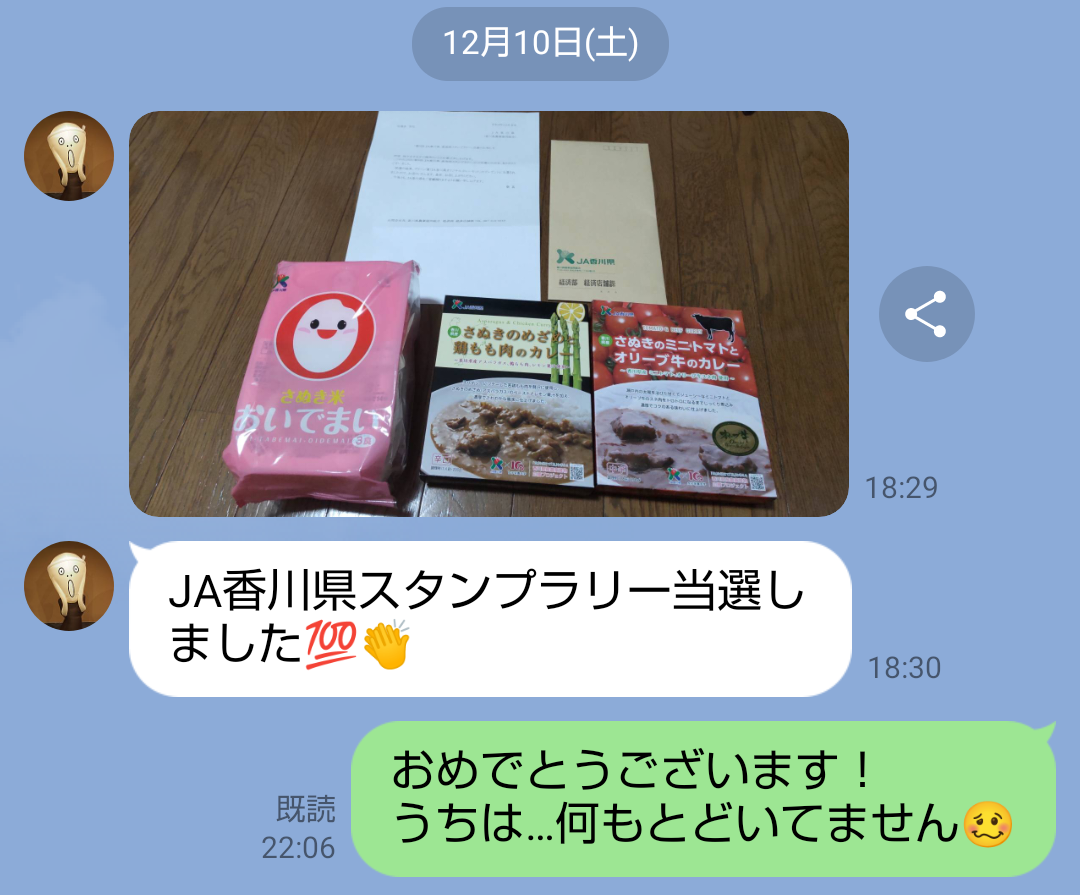 今年の夏に長男クンがJAの産直🍅🧅🥦でスタンプを集めてきてくれたのでしかも2口分!ウチの住所と長男クンの住所で応募していました。🍁🍂🍁🍂🍁🍂🍁🍂すっかり忘れた…先週末長男クンからLINEで報告こちらのキャンペーン↓🎁グリーン賞カレーライスセット🍛これは長男クンに🎁です。💕ありがとうございます💕