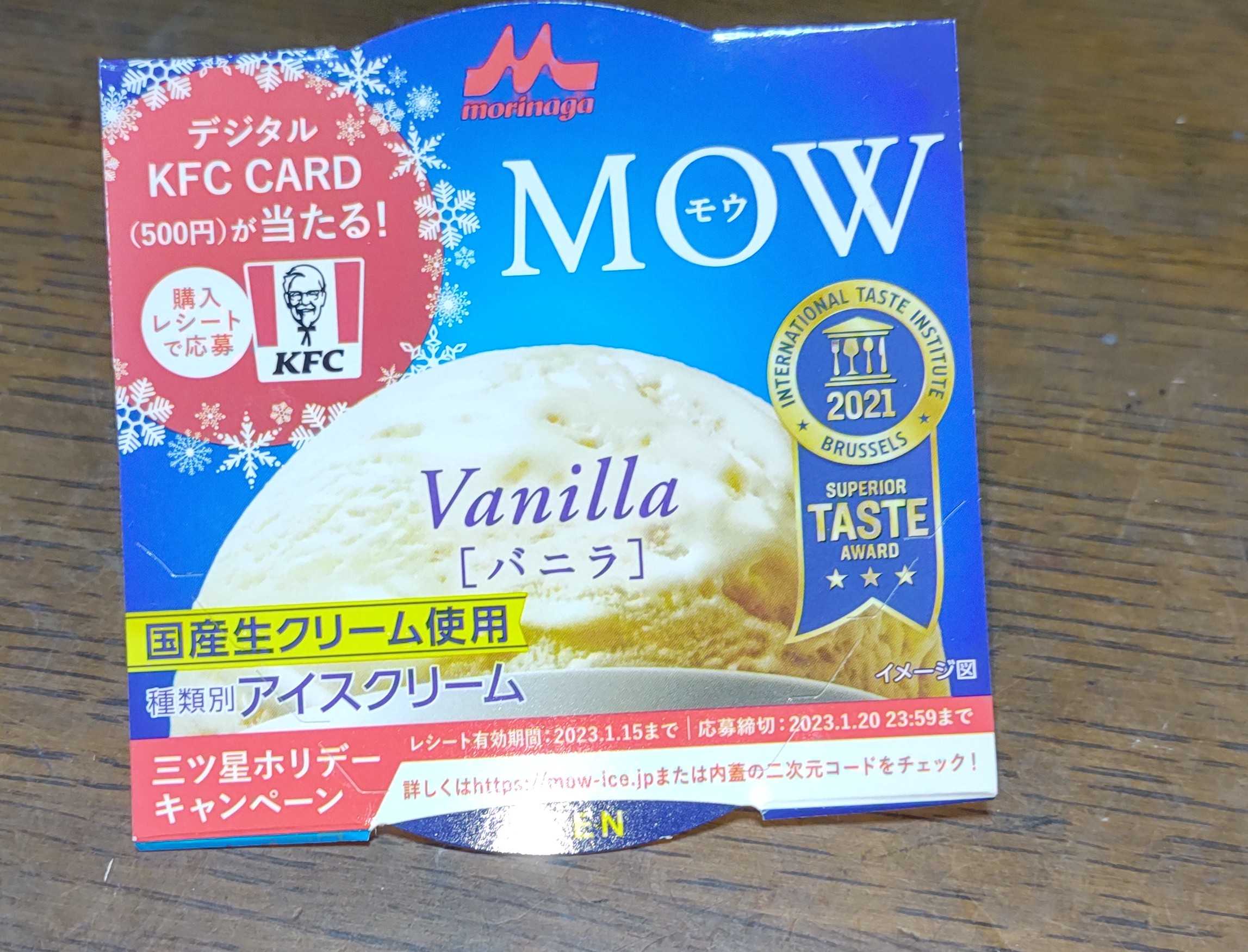 イオンフローズンデザートのレシート作りで森永乳業の『MOW』にキャンペーン告知付きの商品を見つけました😸LINEでレシート登録して審査済んでポイントになってから昨日の朝、応募したら当たりました😉🍀MOW三ツ星ホリデーキャンペーン🎁デジタル KFC CARD 500円分2個購入で KFC CARD 500円分 800名4個購入で一休.com クーポン 10,000円分 200名https://www.morinagamilk.co.jp/campaign/💕ありがとうございます💕