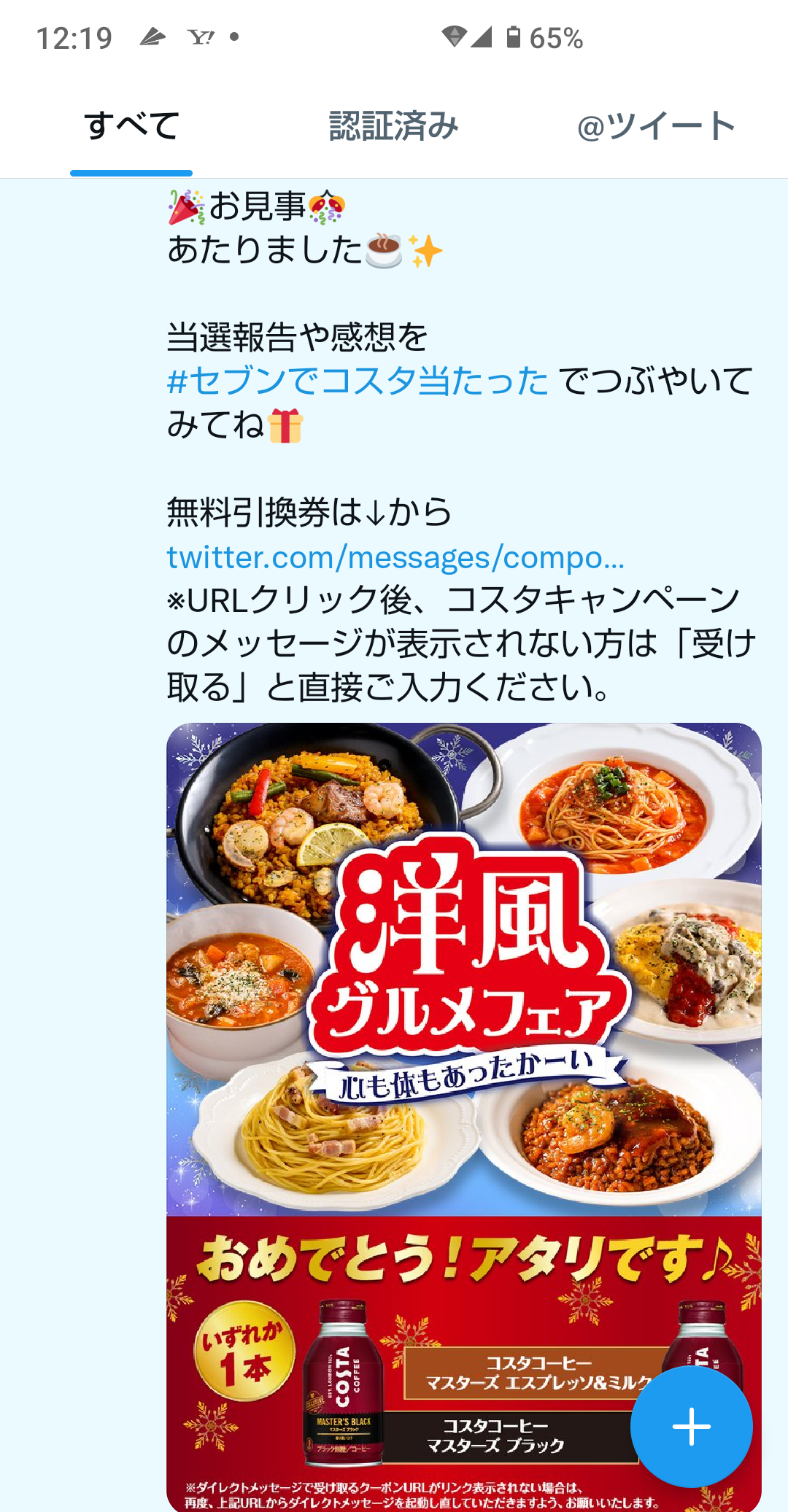 先日セブンイレブンで当選したコスタコーヒーQRコードの下に「キャンペーン情報」って表示いつものコーラのサイトかな?と思いつつ読み取ってみたら…コスタコーヒーのページでしたよ😸よーく見るとキャンペーンありました😉バーコ撮影のポイント応募です欲しいものは…特にないのでとりあえず先着10万名のPayPayポイント10円分を頂きました🤑⚠️12/26 23:59 までです。