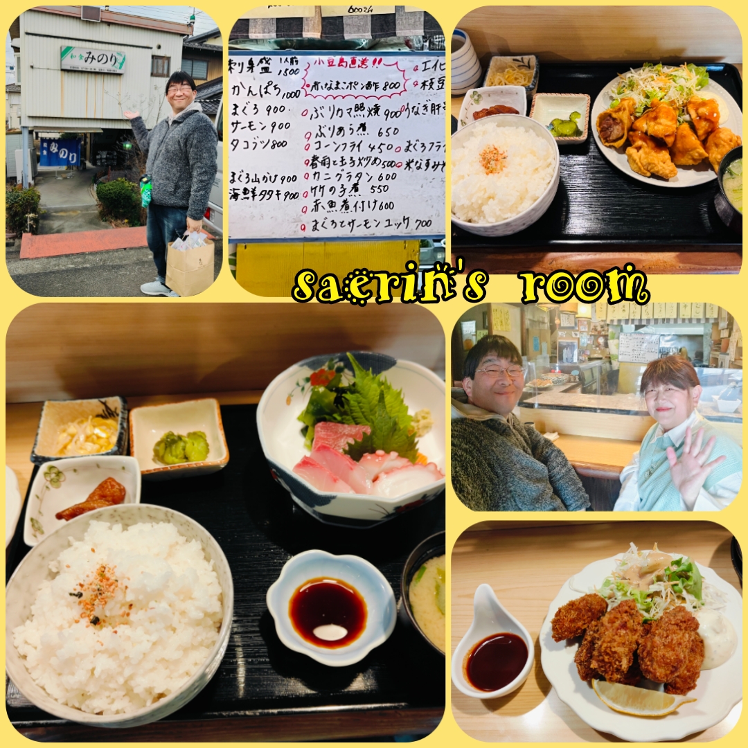 数日前にさえパパに「お店のストラップがなくなったので追加がほしいです」と和食みのりさんの店主さんから連絡がありました。和食みのりさんは三重県桑名市長島町の居酒屋さんで昼間はランチで定食をやっていて家から下道で1時間くらいです。それで昨日は金曜日でしたが月末なのでボランティアがない日だったのでストラップのお届けに行ったのです。ランチも食べるつもりで朝ごはんは抜いてお昼前に着くように行きました。この和食みのりさんのお料理はとっても美味しくて私もさえパパも大好きなんです!!お正月におせち料理を頼んだ時は3人用のをさえパパが殆ど1人で食べちゃったくらいです(⌒▽⌒)お昼12時少し前に着いたときはお客さんが私たちだけしかいませんでしたがそれからお客さんがランチを食べに何人か来てみえました。居酒屋メニューの単品料理が短冊でたくさん壁に貼ってあるので迷っちゃいますが、私はお刺身定食と単品でカキフライをさえパパはチキン南蛮定食を注文しました。店主のまるちゃんが「ご飯は普通盛りで良いですか??残ったら持って帰ればいいから」と言ってどんぶり1杯分はあるであろう山盛りの普通盛りが出てきました。残ってらパックをもらって持って帰ればいいかなと思いながら食べていたらとっても美味しくてお刺身定食も単品のカキフライも大盛りくらいの分量のご飯も全部食べれちゃいました💦とっても美味しくて大満足です(≧▽≦)最近小食になったさえパパも全部完食していました。もう晩ごはんもいらないくらい満腹です!!本当は次女も一緒に連れて来てあげたかったんですが「夜勤が始まる日で昼間は寝るからいけない」と言うのでお弁当をテイクアウトすることにしました。次女にメニューをLINEすると「天ぷら定食が良い」とのことで天ぷら定食と単品の焼き鳥も持ち帰りました。これだけお腹いっぱいに食べてテイクアウトもしたのにとってもお安くて本当にすごく良心的なお店なんです!!お店の看板メニューには小豆島直送の赤ナマコが書いてあり、小豆島ののざっちの旦那さんが海でとって直送されているんだなあっと思いました。年末にのざっちに送ってもらって新鮮でとっても美味しかったです。本当にカウンターで食べる定食がすごく美味しくて大好きなお店なんです。とっても嬉しいストラップお届けになりました(*´艸`*)ストラップは近所の小学生の子たちがもらいに来るんだそうです。みんなに交通安全意識が広がることを願っています!!(和食みのりさんへストラップお届けついでにランチ) 帰りに近くの木曾三川公園に寄ってお散歩でもしようと思いましたが、雨がパラパラ降ってきたので農家の直売所で野菜を買って帰ってきました。ほうれん草と菜花を買ったのでまた次女が好きな辛し和えを作ろうかなと楽しみになりました。娘が傍にいるってやっぱり良いなあっと実感しています。(木曾三川公園)(さえりん7歳1カ月 愛・地球博へpart6)ご訪問いただきありがとうございます!!いつも温かいコメントありがとうございますさえママへのメールはこちらからにほんブログ村、応援おねがいします!!この「さえりんの部屋」を一人でも多くの方に読んでいただき、交通死亡事故で悲しむ人がもう増えませんようにと心から願っています!!さえりんをクリックしてください!! にほんブログ村人気ブログランキングよろしければこちらも応援おねがいします。さえパパの「可愛いさえりん1分間動画💛」ぜひ見にきてね!!さえりん動画はこちらさえりんの部屋別館にじいろ会公式ホームページが完成しました!!よろしければ以下のリンクからご覧下さい。https://saerinsaeri.wixsite.com/aichinijiirokai