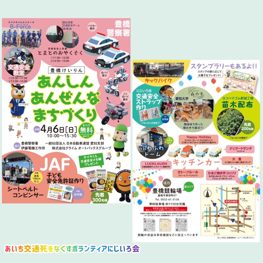 4月6日~15日まで春の全国交通安全週間です。そんな昨日は知立市役所と安城警察署と一緒に知立市のJAあいち中央知立支店前で「交通安全」を呼びかけて春の交通安全啓発品配布活動ににじいろ会も参加してきました。にじいろ会参加者はさえパパと私と市議会議員Nさんの3名です。時間は午後3時間からで、私は午前中と午後2時まで用事があり出かけていましたので終わってから急いでさえパパと一緒に知立市へ向かいましたが早めに午後3時前に到着しホッとしました。市役所の安心安全課の方々が早めに来て準備を始めていました。みなさんに挨拶に行くと声をかけて下さったのは市議会議員K先生でした。K先生は私が前の活動をやっていた時からの知り合いでもう25年くらい前からよく知っている市議会議員さんです。私が会を辞めてからもう6年ぶりくらいなので、前はキリっとしていたのにすっかりおじいさんみたいなお姿だったので最初はすぐにわかりませんでした💦K先生は市議会議員仲間のNさんからにじいろ会の活動などを聞いて今回一緒に配布活動に参加して下さったのだそうです。K先生はさえりんのこともよく知って下さっていました。「ボランティア活動はいつやっているの??今度お手伝いに行くよ!!」と言って下さって本当にありがたいです。どんどん人が集まって来て、安城警察署の警察官の方々もみえました。実は安城警察署の署長も交通課長も警務課長もみんなこの春の人事異動で新しい方に代わられて私たちは初対面の方ばかりです。しかし前任の方がしっかり引き継いでくださったのか気さくにご挨拶くださいました。新しい署長さんは感じが良い方だったので「昨年秋には安城の日のデンパークのイベントににじいろ会のストラップ作り体験を呼んでいただいたのでまた今年もお願いします」と頼みました。さあどうなるかな。帰りには一緒に写真を撮って下さって嬉しかったです。知立市の新しい女性市長とマスコットキャラクターちりゅっぴもみえました。全員で開会式を行ってから、啓発品配布活動をしました!!今回のイベントタイトルは「車はきゅうり(急に)止まれない」で、急にときゅうりをかけてJAあいち中央知立支店からきゅうりの記念品とにじいろ会のストラップと知立市のタオルが入った啓発品150セットを約30人で信号待ちの車や通行人に配布しました。(昨日の春の交通安全啓発品配布活動の様子)(知立市の女性市長さんと)(新しく着任された安城警察署の署長さんと)こうしてにじいろ会も地域に密着して地元の市役所や警察署の行事に呼んでいただけることがありがたいと毎回そう思うのです。だってこのにじいろ会は一被害者遺族であり、一市民が勝手に立ち上げたボランティアなのだから。行政は一切かかわらずに民間の私たちが志を持ってやっているボランティア活動です。そんな私たちに賛同しご協力くださるメンバーさん達と一緒に作り上げた「にじいろ会」なんです。それを市や警察署が協力して下さることも当たり前ではなく、市議会議員Nさんのお力も大きく皆様のご理解のお蔭様だと感謝いたします。これからもなるべく地域に根付いた活動にぜひ参加させていただきたいと強く思うのです。昨日も安城警察署の新しい交通課長から「坂田さんのことは娘さんの事故のことも、活動のことも前任者から聞きました。被害者ご遺族の方が悲しみを乗り越えてよくここまでされてみえると感心しています」と言われました。私たちは決して哀しみを乗り越えたわけではありません。警察や検察にも言いたいことはたくさんあります。でもこうしてボランティア活動をすることで少しでもさえりんの願いを叶えたい、さえりんのような悲しい被害者を出したくない、そしてこの活動をすることで私たちの生きる希望になっているんだとあらためて実感しています。(さえりん7歳8カ月 家族でお出かけpart1)ご訪問いただきありがとうございます!!いつも温かいコメントありがとうございますさえママへのメールはこちらからにほんブログ村、応援おねがいします!!この「さえりんの部屋」を一人でも多くの方に読んでいただき、交通死亡事故で悲しむ人がもう増えませんようにと心から願っています!!さえりんをクリックしてください!! にほんブログ村人気ブログランキングよろしければこちらも応援おねがいします。さえパパの「可愛いさえりん1分間動画💛」ぜひ見にきてね!!さえりん動画はこちらさえりんの部屋別館にじいろ会公式ホームページが完成しました!!よろしければ以下のリンクからご覧下さい。https://saerinsaeri.wixsite.com/aichinijiirokai