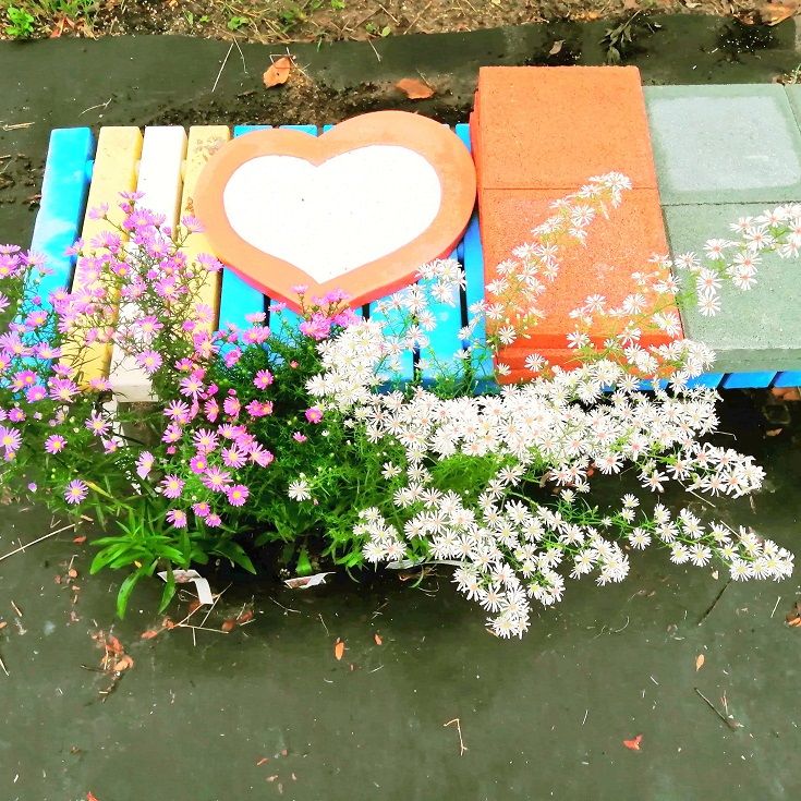 (昨日夕方雨上がりに買ってきたレンガとお花)