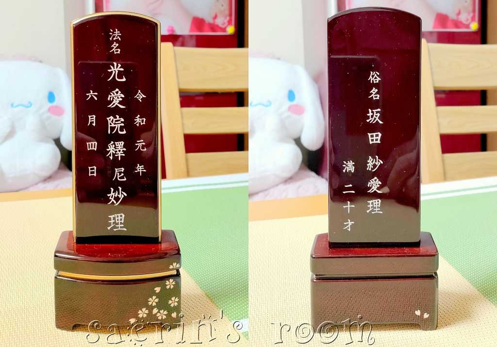 さえりん、新しい名前(法名)と、このお位牌喜んでくれてるよね(*'▽')☆彡