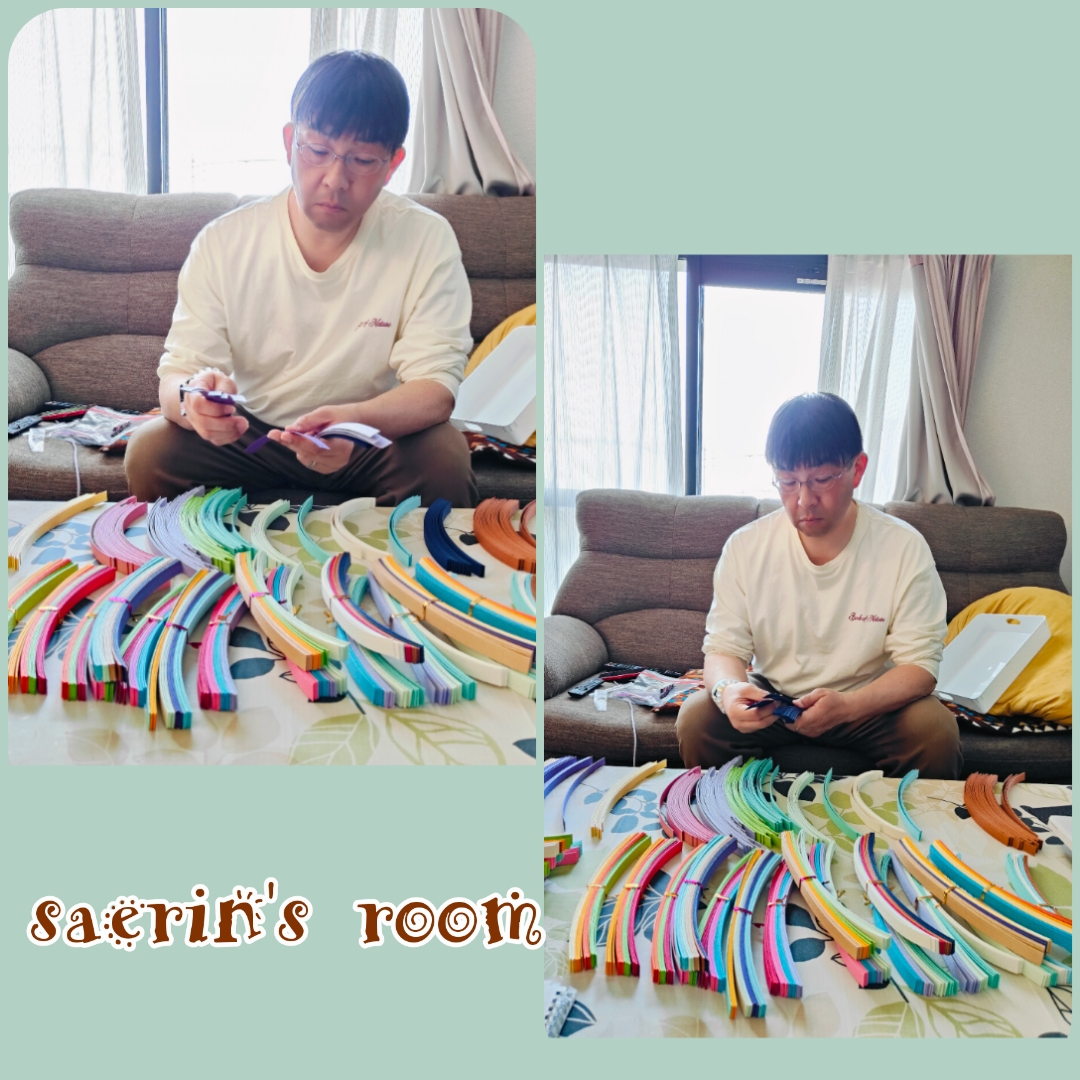 昨日はさえパパがクラフトテープをカットしてくれました。