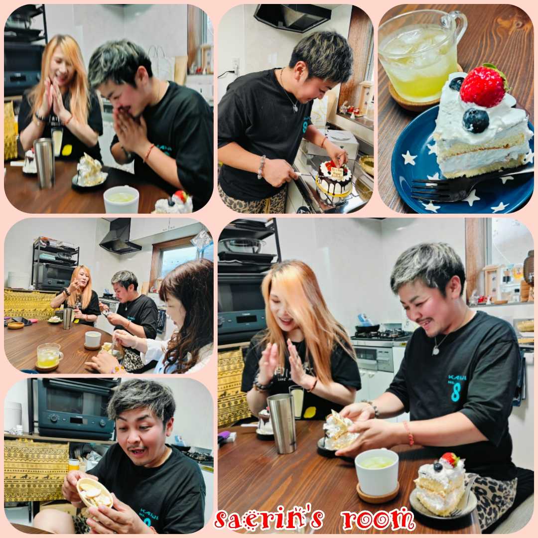 たっちゃんのお家に戻ってお腹いっぱいでしたがデザートは別腹で たっちゃんのお誕生日ケーキをたっちゃんがカットして5人でいただきました!! 釜めしでお腹がいっぱいなのにケーキも美味しく食べちゃいました(⌒▽⌒)