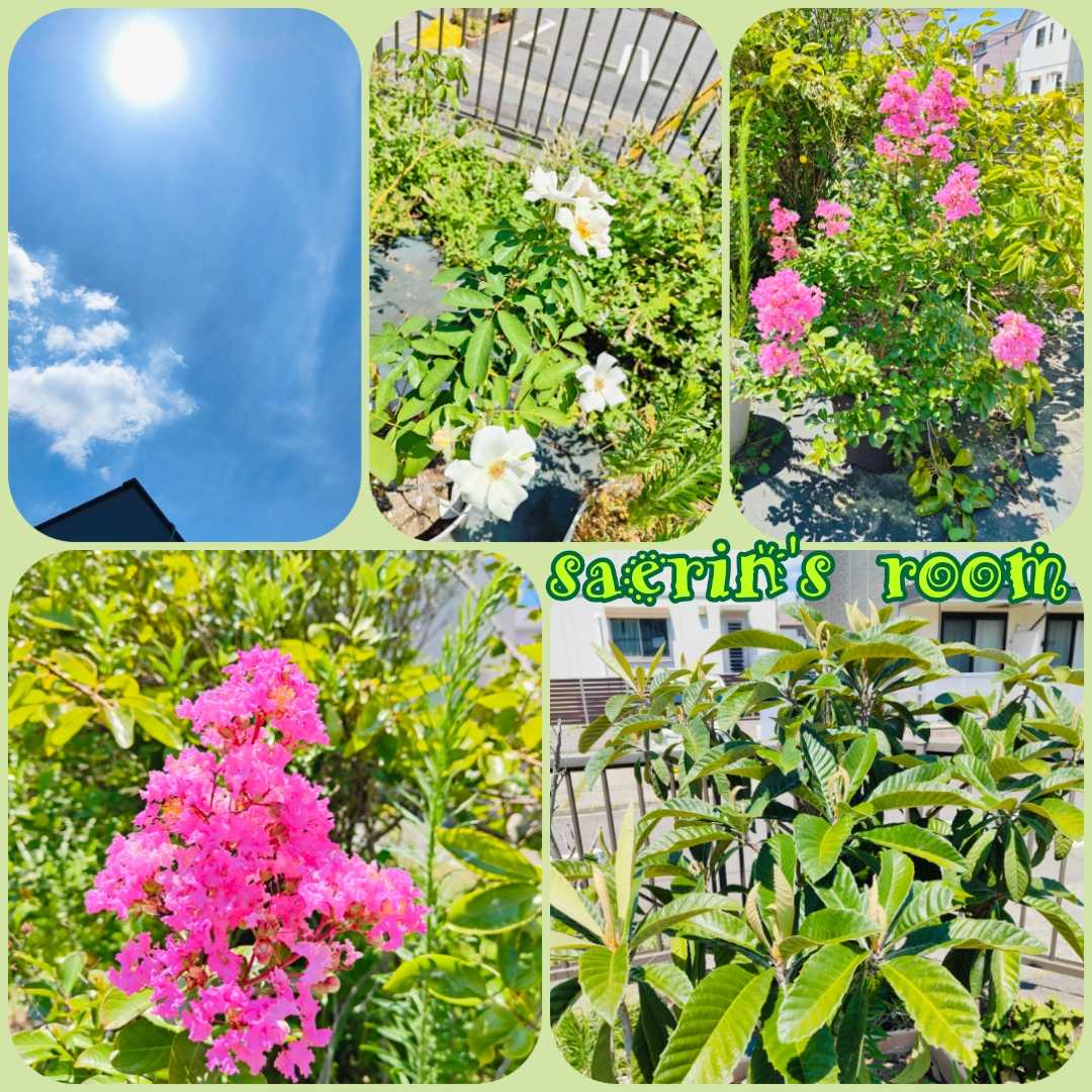 実家の庭は草がかなり伸びていましたが暑すぎで草取りはやめました。外庭にはさえりんのサルスベリがピンクの花をつけていました。枇杷の木も薔薇もこの連日の暑さで水もあげていませんがなんとか枯れずに元気でいてくれて良かったです。