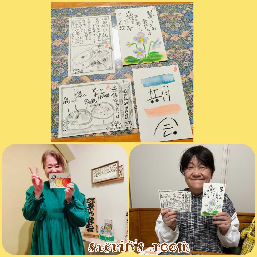 今日はとっても忙しく充実した一日でした。朝9時から12時まで仕事に、帰ってから急いでお昼ご飯を食べて刈谷市のYちゃんのお宅に向かいました。今日は午後1時から2時半までYちゃん先生の己書幸座を受けてきました。私はもう1年以上習っているのに脱線して順番通りの課題からすっ飛ばしてイラストの色紙ばかり書いていた時期があるので半年前から始めたみんなより遅れています(^-^;だから今月は2回目の幸座参加です。今日は久しぶりににじいろ会のメンバーさん方と一緒だったのでみんなそれぞれの課題に真剣に取り組んでいましたが、生徒4人が同じテーブルにいるだけでにぎやかに楽しい気分になりました。みんな文字やイラストを描くのに性格が表れていて個性を感じました。私はせっかちなので殆ど練習せずにいきなり勢いだけで本番をさっさと書いてしまいます。これも私らしいです(^.^)今日はみんなの顔も見れたしたくさん元気をもらえて本当に楽しい己書幸座でした!!(今日は午後から己書幸座へ)今日はさえパパも付き添いでついてきてくれました。Yちゃんに「エアコンの室内機から水がポタポタたれるし効きがあまり良くない」と話を聞いて、さえパパがさっと動いてお庭に室外機を見に行って異常がなかったのでエアコンの室内機のフィルター掃除しました。とっても綺麗になってYちゃんは喜んでくれました。やっぱり元電気屋さんです、お役に立てて良かったです!!私はみんなより遅れて参加したのに午後2時40分頃に一番先に課題を終えてYちゃん先生のお宅を出て次の場所へ向かいました。次に向かったのは知立市の実家の駐車場に車を置いてそこから歩いて10分の知立駅です。そこで3時半から用事があったのです。その様子はまた明日のブログで!!(さえりん10歳4か月 妹の誕生日)ご訪問いただきありがとうございます!!いつも温かいコメントありがとうございますさえママへのメールはこちらからにほんブログ村、応援おねがいします!!この「さえりんの部屋」を一人でも多くの方に読んでいただき、交通死亡事故で悲しむ人がもう増えませんようにと心から願っています!!さえりんをクリックしてください!! にほんブログ村人気ブログランキングよろしければこちらも応援おねがいします。さえパパの「可愛いさえりん1分間動画💛」ぜひ見にきてね!!さえりん動画はこちらさえりんの部屋別館にじいろ会公式ホームページが完成しました!!よろしければ以下のリンクからご覧下さい。https://saerinsaeri.wixsite.com/aichinijiirokai