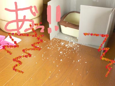 今日は当ブログのサイド欄にて紹介しております猫砂「キャッツ・エコ」について書こうと思います。こちらがそれ。 まず飼い主を驚愕させるのは何と言ってもお値段です。一袋5L入リ 693円 ・・・・・・Σ(゜□゜|||;今まで試した猫砂(紙パルプ、おから、鉱物)がホームセンターで7~10Lで4~500円程度でしたから、そのぉ・・・ま、それは一旦置いておき、大切なのは性能です。そもそも猫飼いが猫砂ジプシーになる理由は・猫が使用感を気に入ってくれるものをひたすら探す・さらに処理のしやすさを追求・砂の成分が気になる このあたりだと思います。私はまず、「安い」ので紙砂を買い、「軽すぎて猫が不満そう」だったのでおから砂に替え、「カッチリ固まる」に惹かれて鉱物砂を各数種類試しました。鉱物砂に決めようかなーと思ったある日、猫の足にペットリと砂がついているのを見ました。「そっか、鉱物系の砂って水分にあうと粘土状に固まるんだ・・・ ん?粘土って何で出来てんだ?体に入って害はないわけ???」ご存知の通り、猫は自分の体を舐める習性があります。足に付いた砂も当然舐めてしまいます。「こりゃいかん!安全な猫砂を一秒でも早く見つけたい!」で、目に留まったのがこのキャッツ・エコ。 (あ、通販番組みたい!?(--;))天然植物素材100%というのが良いではないですか。原材料はドイツ産の間伐材(トウヒ・モミ)と植物の胚芽からつくった凝固剤らしいのですが、なるほど開封するとおが屑みたいなにおいです。次々砂を試すのでウチのコたち新しい砂でもへっちゃらです。さぁ、とわちゃん。感触を教えてちょうだい! けっこう軽いのね。掻きがいがないわ! クンクン。木の匂いがする。。。昨日までの砂はもっと埃っぽかったわ。ふむふむ(・"・;)重量感のある砂に慣れている猫さんは練習が要るかもしれませんね。埃、少な目・・・と。で、いい感じ? そーだね。まぁまぁかな。 スタスタスタ。 さて最重要ポイントでもある固まり具合ですが、「木材がこんなに固まるんだ!へぇー!」という感じ。カッチリって程ではないですが、スコップですくっても崩れません。鉱物系はトイレにもスコップにもベトッと付いてしまいますが、これは付きません(゜∀゜)v!使用後。飛び散ってます。これ、マシなほうです。でもこれは商品の紹介文に欠点として書かれています。覚悟してました。飛び散っても、砕けたりしないので床がザラつくことはありません。ささっと掃き集めてトイレに戻せばすむ話かな。トイレの中で足を振ってから出てくれる猫さんだと問題ないかも。ウチのサンとわは砂掻きが激しいので↓こんな風に囲ってます。。。長くなりましたが、私の感想としては、「いいんじゃない?高いだけのことはある!!(・ω・)b"」【安心安全>価格と欠点】ってことになりました。さぁ、ガールズちゃんたち、存分に舐め舐めしちゃって!足もー、手もー!!*トイレの中に白い粒が見えますが、白い紙砂を少し混ぜています。 血尿の経験から、いつも尿の色を気にしているのでd(・ω・)ポチッと1クリック その優しさが励みになりますm(_ _ )m もう一押しっ(。-人-。) アリガトウゴザイマス :*:・(人*´∀`)・:*: 日記ついでのレビューがお役に立てば嬉しいのですが・・・(・"・;) 猫マンション。 サン&とわ&ままーは楽天アフィリエイトに 参加しています。 我が家の二匹は里親サイト「いつでも里親募集中」からやってきました。アフィリエイト で得たポイントは保護猫活動をされている団体に寄付したいと思っています。 獲得ポイント、寄付報告は随侍UPしていきます。