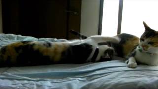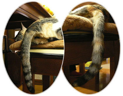 今日は梅雨の晴れ間。・・・というか、ムシムシ ジリジリ アツアツでした。(+_+)~~゜ご姉妹自慢の 長~いしっぽ も ダラリン ダラリーン。 ここで急遽開催、< ~第1.5回 サンとわ検定~ > ドンドンドンパフパフ~♪♪ まず、こちらをご覧下さい。↓ ↓ ↓ では。たった一問の真剣勝負!! 問. とわ はどっち!? 答えは 明日っ。( `▽´)ゞ!! 完全やり逃げな感じで、ままーはこのへんで オヤスミナサイ☆☆☆・・・・・・ これは右とわ、左サン。 ま、あてずっほうでも5割で当たるんですけど、、、(--;) ビミョーに違いますから・・・(〃_ _)σ∥ pocho2" アリガトウゴザイマス :*:・(人*´∀`)・:*: 下がサンで、上がとわ。 あ、暑くないかい?(-。-;)*アイシアフォトコンテストってのが開催されてます~。 アゲハ蝶 逃がしちゃった とわ に、お情けの一票オネガイシマス~(; ̄ノo ̄)*こちらも参加しています。 心温まる写真ばかりです。覗いてみてくださいね。('∀') ☆サン・とわの写真はNo.228~No.232にあります☆ ちょっと分りづらいですが・・・ サン&とわ&ままーは楽天アフィリエイトに参加しています。 我が家の二匹は里親サイト「いつでも里親募集中」からやってきました。アフィリエイト で得たポイントは保護猫活動をされている団体に寄付したいと思っています。 獲得ポイント、寄付報告は随侍UPしていきます。
