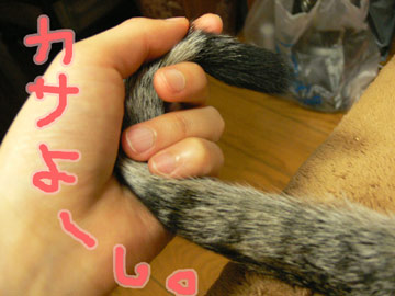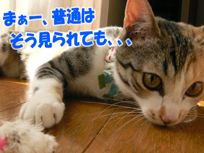 ままーの中で 何故か <サンとわ検定>ブーム が起きているので、申し訳ないのですが今日も1問お付き合いくださいm(_ _ )m Q.これ だーれだ? どうでしょう? 手足だけでは難しいですねぇ。耳が見えると大ヒントですよねっ☆ わかりましたか? 答えは・・・・・・ サ ン でしたー(^-^) はいっ、ここからは 今日の晩ご飯の直前に起きた ノンフィクションストーリーをとわ と共に お送りしたいと思います。食事の準備も大方終わり、あとはサラダにツナを乗せて完成・・・というところでした。ばぁば 「もぅ~、生協で買ってたの忘れてて、またスーパーでツナ買ってもうたわ。 ツナ缶だらけや。ままーちゃん、今度猫のご飯にツナ使ってくれへん~?」 カコッ (← 缶詰開けた) ! ばぁば、それ・・・ ばぁば 「きゃあ! ナニコレっ!!??」 それ モ〇プチやからーーーー!! ままーがテーブルに猫缶置いておいたのが悪いんだけどさ・・・、それ 間違うか?フツー!?(・▽・;)たまに大ボケをかましてくれるケイコばぁば。「ボケーコ」です。全国のケイコさんすみません!! ・・・・・・ってことはー、アタシたちのゴハン、モ〇プチってこと? あー、そ、そうだね。セールだったから初めて買ってみたんだけど・・・(〃_ _)σ∥ そんなことばっか言ってるからデブっちゃうんだぞっ! ポチッとクリック! その優しさが励みになりますm(_ _ )m プルトップ開けるよりポチッは簡単ですから(。-人-。)オネガイ☆ アリガトウゴザイマス :*:・(人*´∀`)・:*: ぱくっ。 とわは食べましたが、サンはお気に召さなかったようです。 ままーは着色料が気になるなぁ・・・何でわざわざ色付けんだろーなー(?_?;)*アイシアフォトコンテストってのが開催されてます~。 アゲハ蝶 逃がしちゃった とわ に、お情けの一票オネガイシマス~(; ̄ノo ̄)*こちらも参加しています。 心温まる写真ばかりです。覗いてみてくださいね。('∀') ☆サン・とわの写真はNo.228~No.232にあります☆ ちょっと分りづらいですが・・・ サン&とわ&ままーは楽天アフィリエイトに参加しています。 我が家の二匹は里親サイト「いつでも里親募集中」からやってきました。アフィリエイト で得たポイントは保護猫活動をされている団体に寄付したいと思っています。 獲得ポイント、寄付報告は随侍UPしていきます。