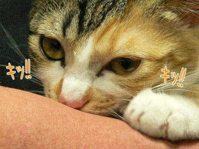こんにちはみなさん。今日はサンが正しい血の吸い方を教えるでしゅ。 まず獲物にカッ!!と爪を立てて押えるでしゅ。 ジャマが入らないか周りの音を気にしながら吸い付きましゅ。 血の出がよくなるように揉むでしゅ。 揉むでしゅ。 一心不乱に吸うでしゅ。 ・・・・・・・・・・・・・・目がイッちゃってましゅ(=w=;)。 吸うでしゅっ!! 「サンちゃん、ちょっとゴメンやで~。左手にしてんか。」 それでも止められない。 ・・・(^-^;)母猫から早くに離されたコはお乳を吸うしぐさが抜けないと聞くので、きっとご姉妹もそうだったんだと思います。赤ちゃんの頃はこの姿を見るたびに切ない気持ちになったものですが、今となってはもぅ・・・可愛くて(〃∇〃)アハーおばあちゃんご姉妹になってもこうして甘えて欲しいものです( ´艸`)ポチッとクリック! その優しさが励みになりますm(_ _ )m もう一押しっ(。-人-。) アリガトウゴザイマス :*:・(人*´∀`)・:*: その頃の相棒 どたーん と食器棚の上。*アイシアフォトコンテストってのが開催されてます~。 アゲハ蝶 逃がしちゃった とわ に、お情けの一票オネガイシマス~(; ̄ノo ̄)*こちらも参加しています。 心温まる写真ばかりです。覗いてみてくださいね。('∀') ☆サン・とわの写真はNo.228~No.232にあります☆ ちょっと分りづらいですが・・・ サン&とわ&ままーは楽天アフィリエイトに参加しています。 我が家の二匹は里親サイト「いつでも里親募集中」からやってきました。アフィリエイト で得たポイントは保護猫活動をされている団体に寄付したいと思っています。 獲得ポイント、寄付報告は随侍UPしていきます。