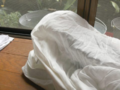 ゴゾ・・・ 昨日のクシャクシャのシーツの正体・・・ ぴ らっ ( ̄m ̄) あー。 あらー、サンちゃんじゃないの~。ずっとそこで隠れてたん? もぐってたら 気持ちよくって 寝ちゃったんでしゅー。へー、そーなんだぁ( ´艸`)と、サンが言ってたと思わせるほど、「モグリング」が心地よいらしく、、、ご姉妹 揃って マッタリピロートーク♪ からの~、いきなり攻撃! スキ有りでしゅ! えぇー!? ・・・・・・って、もー、やめてヨー☆ にゃはー☆ 冗談でしゅ~。 じゃれ合いも ゆる~い、そんな薄曇りの昼下がり。まったり・ゆったり・ねむねむクリック。。。"Oo .(_ _ ) こっくり・・・こっくり・・・ポチッ!! ( ̄Д ̄;ノ)ノ ハッ!! ソーユーノ、ダイカンゲイデゴザイマス :*:・(人*´∀`)・:*: あー、まま、いたのー? うんー、あのねー、ままもマッタリ仲間、入れてほしーなー。。。(゜ω゜)*アイシアフォトコンテストってのが開催されてます~。 アゲハ蝶 逃がしちゃった とわ に、お情けの一票オネガイシマス~(; ̄ノo ̄)*こちらも参加しています。 心温まる写真ばかりです。覗いてみてくださいね。('∀') ☆サン・とわの写真はNo.228~No.232にあります☆ ちょっと分りづらいですが・・・ サン&とわ&ままーは楽天アフィリエイトに参加しています。 我が家の二匹は里親サイト「いつでも里親募集中」からやってきました。アフィリエイト で得たポイントは保護猫活動をされている団体に寄付したいと思っています。 獲得ポイント、寄付報告は随侍UPしていきます。