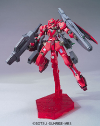 アストレアタイプFのフル装備画像のリクエストがありましたので掲載します。これがフル装備。過剰ともいえるスタイルが無骨で男らしいです。ビームピストルだと軽快なイメージになります。ミサイルランチャーは脚部・前腕部に装着できるほか、手持ちも可能。本キットにのみ付属する特別武装がハンマーです。内部にクリアパーツが使われGN粒子装備とわかるようになっています。