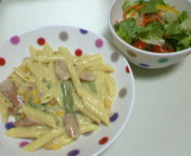 ここんとこ毎週月曜日はほぼ自炊をするのが習慣になっています(*^_^*)あとは、作ったり買ってきたり食べに行ったり・・・。と、いうことで本日のメニューは「カレークリームパスタ」簡単だしあたしは好きだけど、ちょっと子供っぽい味かもね(^_^;)最近、この楽天のブログとミクシィというブログにはまってて(特にミクシィ)、常にネットにつないでコマめにチェックしちゃってます(^.^)b