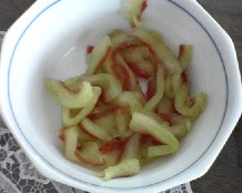日にちを間違えました…^^;11日と12日、実際に起きた出来事が入れ替わりましたが、そこはまあ、いいとして。(なにがいいのか分かりません~~)おいしいもの大好きの私。スイーツには特に目がありません。ダイエットよりおいしい物を!子供達にも(おばあちゃんにもついでに)食べさせた~い!でね。スイカ食べましたでしょ。スイカ漬物大好きな猫並みの和暮らしさんにお広め~うちのぬかは嫁に来てからずーっとありますが、時々わたくしが留守の時、かびてしまってやり直し。ですから丸々10年とは言いませんが、糠漬け暦は12年になりますか。今年はスイカを一度塩をして、少し水を抜いてから糠に漬けました。するとちょっと歯ごたえが出ましたわ。歯が悪くなっている姑にはちょっと気の毒だったかしらん?今日のパン食腐りかけのバナナ!をどうしようか悩んでおりました。そうそう、どこかで見たぞ~バナナスイーツ!バナナをバターで軽く炒め、粉糖とシナモンたっぷりふったもの。ミントの葉は庭に群生してしまったものを台所に持ち込んだもの。色が薄くなって丁度良いの。あとは夏場恒例のこれ赤しそのジュース!これは薄めたもの。原液は常温で一年はかるーくもちますの。子供達はこれが大好き。身体にもよろしいよ~時々は超簡単すい~つもアップしようかしらん?