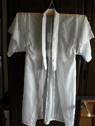 もうちょっと…といってからが長かったのですが。袖付けをして、紐をつけ、後ろに衣紋抜き用の紐通しをつけて。やっと完成。アイロンかける前ですのでしわくちゃでしたわ…^^;ふと気がついてそうだ、この襦袢にはタックをつけるんだった!!ということで、あとからえっさかほいさと付け直しまして。洋服で言うダーツです。私は胸が寂しいのでいらないと言えばいらないのですが…(^_-)-☆絽って目を通さないとみっともないのね。まっすぐ縫えるのですが、気を使うことしきりでした。一列ずれても生地の重なりが見えてしまうの。透ける素材って大変だったのね。自分が今までこのへん適当だったのかもと反省します。ここでもしるしつけがポイントでした。下手にポリエステルなので、へらが使えないの。チャコペン使ってかいたものの、滑ってせんのずれること!苦労した一品でした。いつ着られるのかしらね~(;_;)