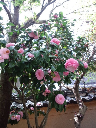 露天風呂の周りに 次々と花が咲き始めました椿 石楠花 と 絶好のお花見の気分です楓も葉っぱを広げて若芽の優しい色を見せています。GWのお客様を歓迎しているようです。