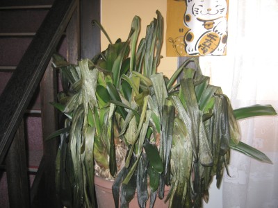 いきなりみすぼらしい鉢の画像を披露しましたが、冬の異常な寒波で こんなになってしないました。何年前になりますか、一本の君子蘭を買い求め毎年鉢を大きくするだけで 育てて来て、昨年は10本の見事な花を付けて一か月以上見事な花をお客様に楽しんでいただいていました。例年でしたら 今頃葉っぱの根元に 白い花芽を膨らませている頃なのですが、、、なすすべも無く 寒波の去るの待つしかありませんでした他に多くさんの 観葉植物も全滅です全てが いただき物で、思い出のあるものばかりでした、もう今年から それらの世話をすることが出来ない、、せめて 綺麗だった年の姿をUPしましょう、、、木立ベコニアは寒冷地では越冬は難しいと思われましたが、20cmぐらいの子苗から育て春になって 重い鉢をこの場所に置くことが、とても嬉しい作業でした。 沢山の観葉植物さん永い間楽しませてくれて本当ににありがとう!