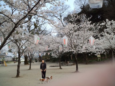 日田市まで桜見に行きました若女将と悦子おばちゃんと三人です大原神社の下にある 美味しいパン屋さんのテラスで焼き立てのパンを食べながら見る大きなしだれ桜は 見事でした。後 亀山公園に行き さくら&すみれにもお花見をさせてあげたけれど、他のワンちゃんが気になるばかりで、気分はどうだったかな?とても お天気も良く 楽しい一日でした。
