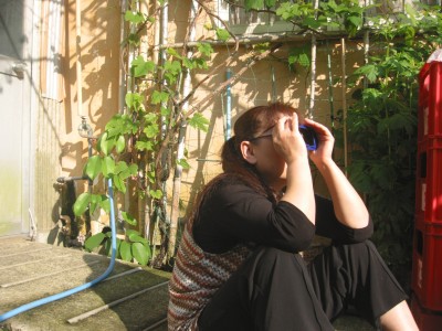 「早く来て下さい 金星を見ましょう!」と若女将に声をかけられ、観測グラスをにぎって勝手口に飛び出して行きました時々雲にかくれるものの、ベストの天候です見えました!!ちょこんと ホクロを付けた太陽さんでした!こんな日中に 太陽と金星を肉眼で見れるなんて!100年に一度のチャンスに巡り会えて しあわせ! スタッフ全員はもちろん、 隣りの叔母ちゃんもご出発前のお客様全員にも グラスを渡して見ていただけました。賑やかに、 世紀の天体ショーに酔いしれた一日でした。 太陽を観測しながら いちご狩り 裏の勝手口を出た処に 猫の額ほどのいちご畑があります 一坪ぐらいのマルチをひいた畑の部分は殆ど収穫が終わっています横の路地や鉢植えの部分にはまだ 赤い実が沢山付いています一か月ぐらい前から 毎朝 小さなかご一杯のいちごを摘んで食べました今の時期 お店には 殆ど見かけないのに我が家は 甘い新鮮ないちごが食べられる、、贅沢なことです。今朝は 太陽観測の合間に いちごを摘んで、食べながら 次の晴れ間を 待ちました。 福岡でいちご農家の 少年サッカーの監督さん!今年も 合宿で可愛い少年達を連れて見えて、又 いちごの苗作りや育て方を教えて下さい。