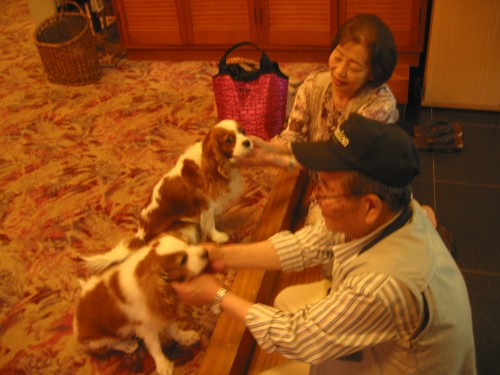 6月21日ご宿泊のA様ご夫妻はとても犬好きでした2年前まで犬を飼っておられたそうです看板犬のさくら&すみれに会いたいとご滞在中 何度も 可愛がってもらいましたお帰りの時も 暫し別れを惜しみ合いましたさくら達もちょと名残惜しそうでした。 6月22日ご宿泊のM様家の キャバリア(ルビー)のキングくんはイケメンです!すみれのアタックに少々ビビッていました。とても可愛いかったです!