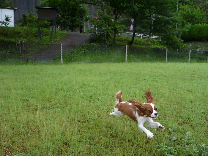 山光園のドッグランで思い切り走っているS 様家の キャバリアのミリちゃん!小ぶりに育つようにと名付けられたそうです。今は8ヶ月で可愛いさかり、我が家のすみれの当時を思い出されて 皆で奪い合って抱きかかえ、その柔らかくて軽い抱き心地を懐かしがっていました。夜は室内ドッグランで さくら&すみれも参加して大運動会です!そしてすみれのアタックが激しいものだからびびって椅子の下に隠れるのが可愛と皆で大笑いです!ミリちゃん!次に会う時はどんなに変わっているかしら、、 さくら&すみれと一緒に楽しみに待っています!