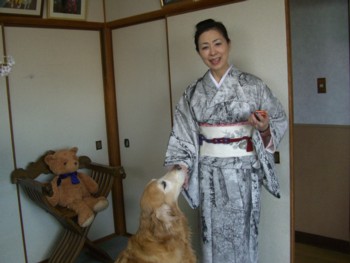 私の誕生日に 訪問着を買ってもらいました。やったぁ~ 「山岡古都」作の 芸術品 黒の濃淡で、日本の自然の美感を墨絵で表現した作品だそうです。 一目で気に入り 目を奪われてしまい、お小遣いの少ないパパに、無理して買っていただきました。 ありがと・・・・・ 実は、9月に オーストラリアの友達が、結婚するので、是非・・出て欲しいとのこと、それで訪問着が欲しかったのです。日本の文化を伝えるためにも(ええ かっこう) 着物をきて出席しま~す。