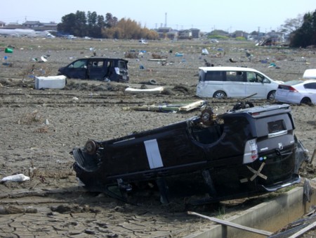 いよいよ待ちに待った出発の日です。主人は昼も県庁に出向き、休憩無しで準備をしていたので体力が持つかちょっぴり心配でしたが、なにはともあれ今日の日を迎える事が出来ました。多くの人達に支えられ、長い準備期間を経て今日に至ったので、感無量です。でも本番はこれから、無事に務めを果たして全員元気に帰って来れますように。と祈りつつ出発しました。途中 東北自動車道で、事故渋滞に巻き込まれ、予定より2時間遅れの朝10時に亘理町に到着しました。ボランティアセンターで,早速支援物資を降ろしましたが、あまりの量の多さに担当の職員が、目を丸くして驚きの様子でした。皆様の善意の賜物です。 生活必需品の保管場所(体育館)沢山の物資であふれていましたが、何故か 仕分けをしていたのはたった一人の女性だけ。人手が足りないのでしょうか? 保管場所の2階で。 亘理中学校で早速ぜんざいの炊き出し。 中学校でのパパ、菅総理ではありませんよ。(そんなええもんか・・笑) 亘理中学校の生徒さん達 許可を得て撮影掲載しています。 「これってテレビに出るの?」ですって・・ 屈託の無い笑顔に、しばし癒されます。 さてこの後は、もっとも大世帯の亘理高校の番です。 亘理高校 500人を超す避難者の方々に、炊き出しは時間勝負 もち焼きも必死 手際よく出来上がっていきます。全て終えたのはもう夕方。被災者の方達の感謝の言葉が疲れた私たちを勇気づけてくれ さあー明日もがんばるわ・・の気持ちになりました。バスにて睡眠を取り、(眠れなかったけど・・ ) 早朝から、賄いに用意していたオムスビの残りを30個ばかり使って、 お粥を作ってくれました。AさんTさんありがとう。 とっても美味しかったですよ。 災害ボランティアに集まって来た方達にも食べて頂きました。皆さん大好評 本日のスタートは亘理小学校からです。ここは250人の方々が非難されておりますが、日中は若い人が自宅の片付けや、ボランティアに出かけており、やや少なめでした。 亘理小学校の被災犬達です。全部で7頭いました。私達が設営している間、主人とAさんTさんの三人が、亘理町産業観光課長の東さんに連れられて、災害対策本部の町長と副町長にお会いして歓談し主人も、「とても気さくで穏やかなお二人とお話が出来た。」と喜んでいました。次は、今回最後の炊き出しとなる吉田小学校です。こちらもやや少ない目の100人ほどでしたので、運動場の片隅でゲートボールをしていたおばちゃん達にも食べて頂きました。・・・・例によって大好評ここの担当者は、私たちのバスを見て 「久し振りに白ナンバーのバスを見ました。 和歌山からですか?感動です。」とおっしゃってくれ、 白ナンバーバスは個人のボランティアと思うらしく、ボランティア慣れしている人達にも新鮮に写るみたいで疲れ切った私たちの心を少し晴れやかにしてくれました。これで私達の役目はひとまず終了です。 約1100人分の炊き出しを終えて。ここから先は主人の感想です。各避難所で、炊き出し終了後挨拶を求められたのですが、「思い入れ強すぎ、避難者の様子を目の当たりにするだけで、胸が締め付けられて絶句してしまい涙が出て来て、思いを十分に伝えられなかった事が残念。」との事でした。反省する事は沢山ありますが、心身ともに弱りきった被災者の皆様に、暖かいぜんざいを食べて頂いて、ほんのちょっぴりでも心を暖めてあげる事が出来たとしたら、これに勝る幸せはありません。被災地の現状を直接目で見ての印象は、マスコミの脚色したものと違い圧倒的で重々しく言葉も出なくて 呆然となりました。今考えただけでも胸が苦しくなります。被災の範囲も規模も未曾有のものでまだまだ先が見えてきませんが、亘理町に関しては6月中に仮設住宅が完成して避難所が無くなるとの、町長の言葉で少しはほっとしています。今回同行して頂いた、 ATさんYAさんMKちゃんTOちゃんYUちゃんMTちゃんTOさんMSくんKSくんの皆さん、そうそう最後にパパも本当にご苦労様でした。未熟な私にとって、この経験が今後の自分の人生に少しでも生かされたらと願ってやみません。あらためて「被災された皆さん全員に明るい未来がひらけますように。」と心からお祈り申しあげます。 被災地の現状です。多くの亡くなられた方の御冥福をお祈り申しあげます 合掌