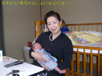 3月11日 待望の男の子が生まれました。私の子・・・・と言いたいところですが、残念ながら パパの孫になります。先日お祝いに行って来ました。 一人目 二人目 三人目・・・・う~んと七人目かなぁ・・・ 赤ちゃんは とっても可愛いですね~ ほっぺは、ぷくぷくぷにゅぷにゅ・・・ 名前は、ゆういちろう君でしゅ。。赤ちゃんって、本当に限りなくほほえましいです。そんな、ゆういちろう君の成長を見守って行きたいと思います。私も 赤ちゃん欲しかった・・
