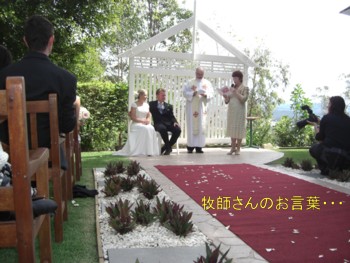 毎日忙しく ついつい遠のいてしまってました。何ヶ月振りの更新です。9月16日(木)~20日(月)まで 友達のエレナとマットの結婚式に招待されオーストラリアに行ってきました。行って帰って来るだけのために・・・何だか勿体無く感じましたが、でも こんな事は一生に一度しか経験出来ないんだろうな~って思っています。HISで航空券を購入し、ジェットスターで関空22時50分発 ゴールドコースト到着が17日の午前8時半、空港からバスで ロビーナまで行きそこから電車に乗り換えブリスベンのセントラル駅で又乗り換えやっとストラスパイン駅に到着 待ってくれてる筈のお迎えが来ていません、エレナに電話をして待つこと30分 外国では予定通りに行かないと不安だわ~そこにエレナの親戚のヘイリーが車で迎えに来てくれ、私たちが泊まるホテルに送ってくれました。 到着は16時くらいだったかな~あ・・・バスの乗り場を探したり乗り換えの時間待ちとかで、家を出てから22時間・・長い長い道のりだったよ・・・オーストラリアの気候は日本の3月で、(朝晩は冷え込み12度まで下がってしまいます)日中は、さわやかな23度位 ポカポカ陽気で気持ちの良い秋を感じさせます。向こうの結婚式は、ほんと質素でホテルの庭で神父さんを招き誓いをたて、贅沢は慎むって感じに見えました。その後 新居の庭でパーティーです。とっても良いことですよね。皆 和らいでその上、穏かでリラックスに・・心から楽しめる結婚式でした。毎回思うのですが、オーストラリアの自然の偉大さに感動してそして人間の心の豊かさ自然の恵を感じる事が出来ました。文化や食生活に触れるって本当に楽しい時間を過ごせました。CIMG5944by ヒカル君