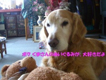 ヒカルは ぬいぐるみが大のお気に入りです。嬉しくてうれしくて 絶好調になってくると、部屋から くまさんを咥えてきては あたりかまわず、振り回し振り回し・・・・とうとう こんな事に。 あぁああ・・・その獲物は 食べられませんから・・・・CIMG5276by ヒカル君