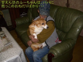 あるブリーダーが危機的状態で事業を続けられなくなり、どうしても犬達を手放さないといけない状況に追われているとの事でした。夫婦で、コーギーの繁殖を始めて10数年、犬が好きで好きで始めた事なのに・・・なんでこうなってしまったのか?。 今 抱えている子達は50頭近くいるようです。その中には、年老いた子達や下半身麻痺で車椅子の子もいます。そしてガンの子も居て現在 抗がん剤治療を受けているとも言っておりました。全て抱えてしまっているってことは、とても愛情深い方なんだろう・・・。とにかく、今後二度と 繁殖をしないと約束をした上で、協力する事にしました。この子達には 何の罪も有りません。幸せになってもらいたく譲渡に進めて行きたいと思っています。どうか 愛情を持って終生 家族の一員として迎えてやってください。それから 不幸な命を作らない為に 去勢 不妊手術をお願いしております。フィラリア予防薬の投与と 混合ワクチンも必ず接種していただけますよう宜しくおねがいします。詳しくはV.O.Vのホームページを見てね 2010年12月16日 現在で、16頭の譲渡が確定しました。 本当にありがとう御座いました。・・・・・・・・・・・・・・・・・・・・・・・・・・・・・・・・・・・・・・・・・・・・・・・・・・・・・・・・・・・・・・・・・・・・・・・・・・・・・・・・・・・・・ ふーちゃん 2003.4.9生まれ 12キロ (みーちゃん・ふーちゃん姉妹のふーちゃん) 避妊しています(だから太っているのかもしれないかな) とても元気ですが、みーちゃんより落ち着いた感じです。 (譲渡決定しました。) べり男君 2000.6.9生まれ べリーマッチ兄弟のべり男 コーギーでは、フラッフィーと呼ばれるロン毛の子で、交配に は向きません。 でも、ムクムクでとっても可愛いです。 ベリマチに関しては、このベリ男があかんたれで、マチ男と離すとおなかを壊してし まうのだそうです。 2匹は生れた時からずっと一緒なので、2匹一緒に迎えてくだ さる理解ある方をお願いします。 マッチ君 2000.6.9生 マチ男は、短足シェルティのようです。 ベリ男と本当に仲良しで、あかんたれを気遣う兄ちゃんのようです。 あずきちゃん 2000年2月11日生 とっても落ち着いた性格で穏やかです。お外でも怖がることなくお散歩が出来 き順応性があります。 ( 譲渡決定しました。) ぎんじ君 2000年2月11日生 (あずきちゃんと兄妹です。) 大人しい性格で おっとりしています。お散歩大好き。..................................................................................................................................................昨夜、ふーちゃんの里親さんが見えました。ふーちゃんはシャイで気弱で神経質を絵に描いたような子、パパが二時間前からふーちゃんを撫でさすり、ボディータッチに慣らしてました。と言うのも里親さんのKさんは、前日に最初からフーチャンにタッチしまくりで少々ふーちゃんは引き気味だったので少しでも訓練しなければと思っていたみたいでした。そのかいあって、今夜は、Kさんのやや乱暴な抱っこにも、ものおじせずにべたべたで、大成功。良かったねパパ よかったねふーちゃん2時間ほどKさん御夫婦は、フーチャンを抱っこして 赤ん坊のように・・「ふーたんふーたん こっち向いて ふーたん ぶたのふーたん ふとっちょのふーたん・・・」と言いながら ベタベタすりすり・・・それでも ふーちゃんは 嫌な顔せず 相性ばっちりでした。帰りは、奥様の運転で御主人が抱っこして帰って行きましたよ。家に無事着いたと電話頂き、「ふーちゃんは落ち着いていますよ、自分の家の様にしています。僕のベッドの上で寛いでいますよ。どうか安心して下さい。また 里帰りをしますのでその時まで待っていてください。写真も動画も撮っては持って来ますから、心配しないで下さい」とのことでした。本当に毎回毎回 とっても良い方に貰われ 嬉しくてたまりません。何より嬉しいです。感謝の気持ちでいっぱいです。