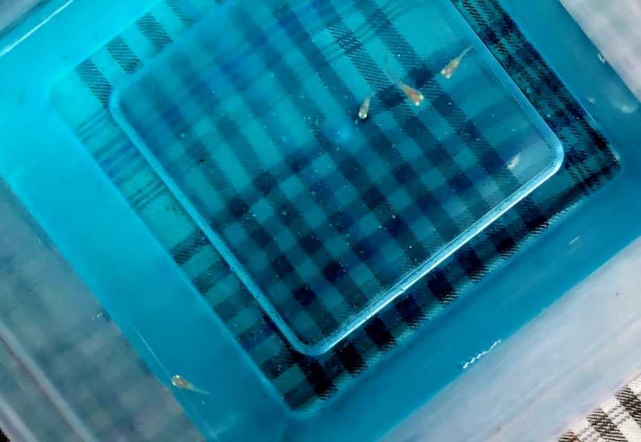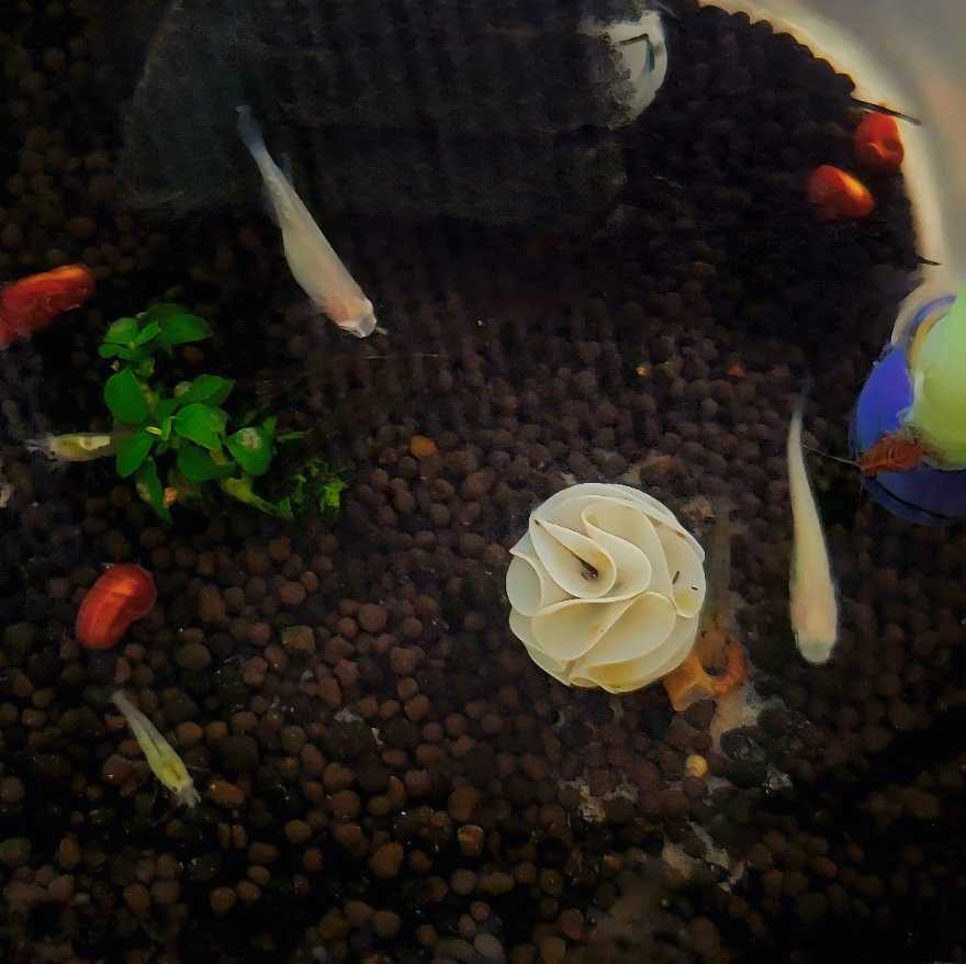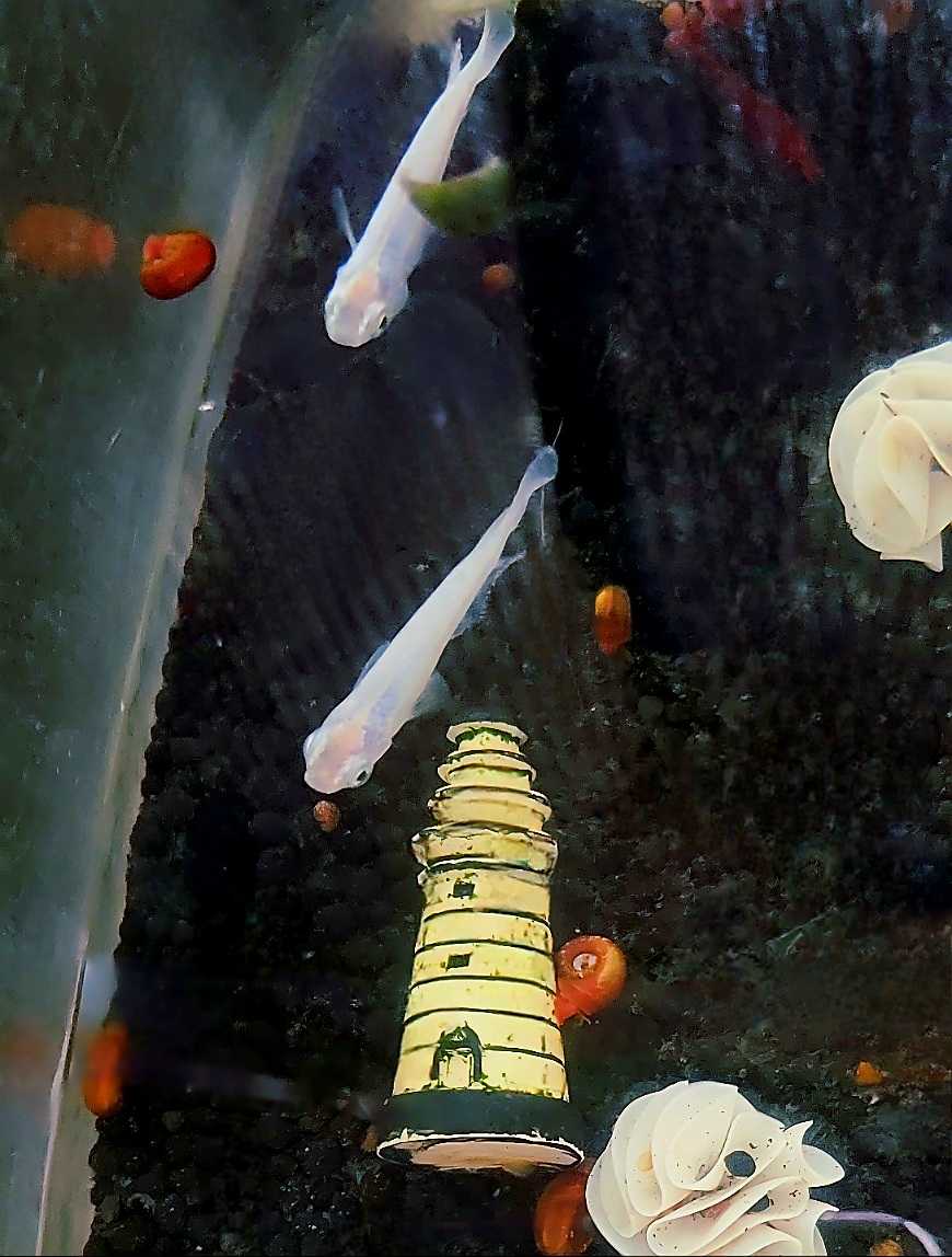 白めだかですが、光の当たり具合で淡いさくら色にも見えています。